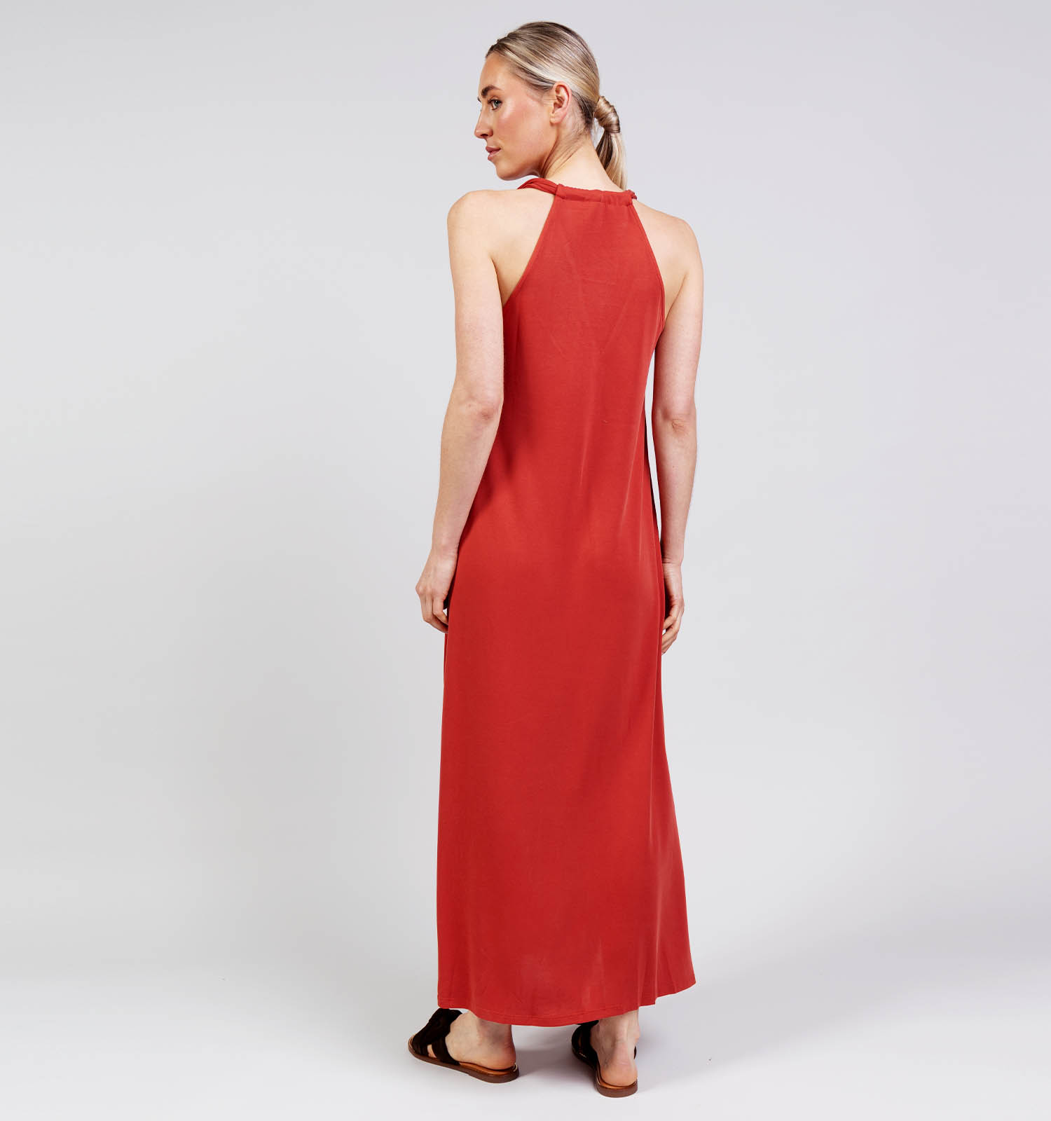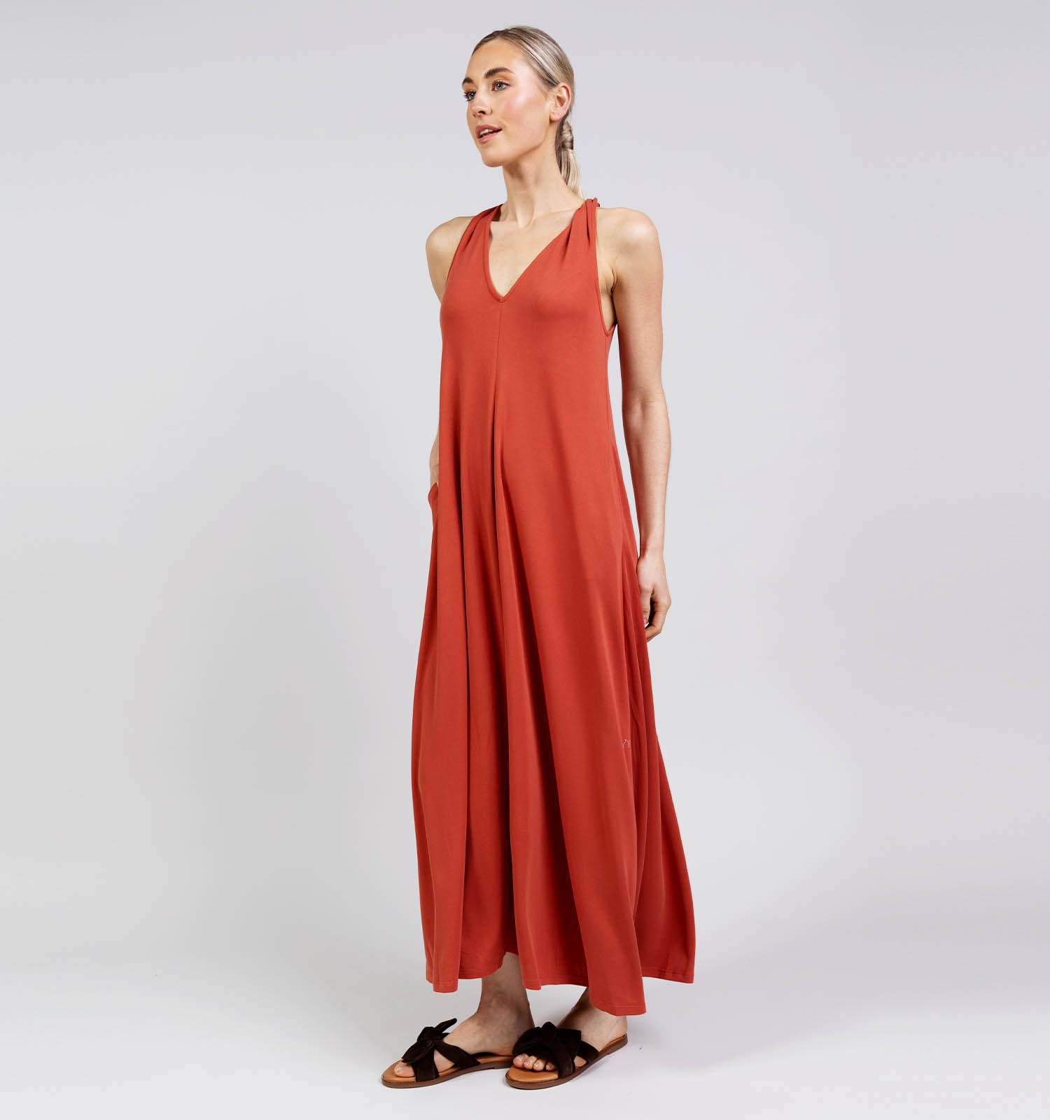 Rue Mazarine Luxia Terracotta Donkeroranje Lange Jurk