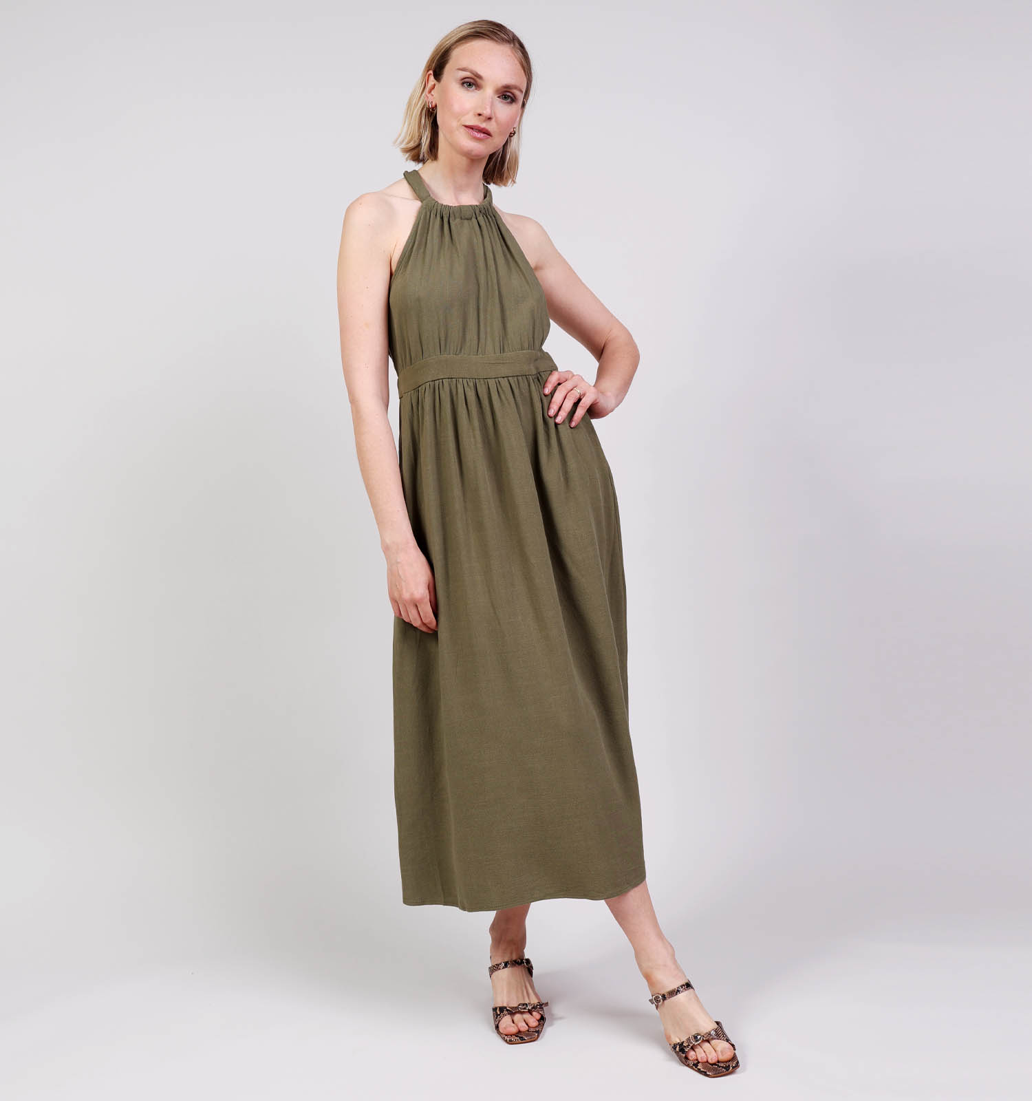 Deze The Korner jurk is de gulden middenweg voor als je niet kunt beslissen of je nu een korte of een lange jurk wilt aantrekken! Het leuke aan dit halflange groene model van The Korner is dat je hem het hele jaar door kunt dragen. In de zomer combineer je hem met sneakers, high heels of slippers, in de winter met een knusse panty en (enkel)laarsjes of boots. Een vest of jas die ergens tussen de taille en de heupen valt qua lengte, staat hier het best bij. Met zo'n bovenstuk wordt jouw zandloperfiguur extra geaccentueerd — dat staat heel mooi!