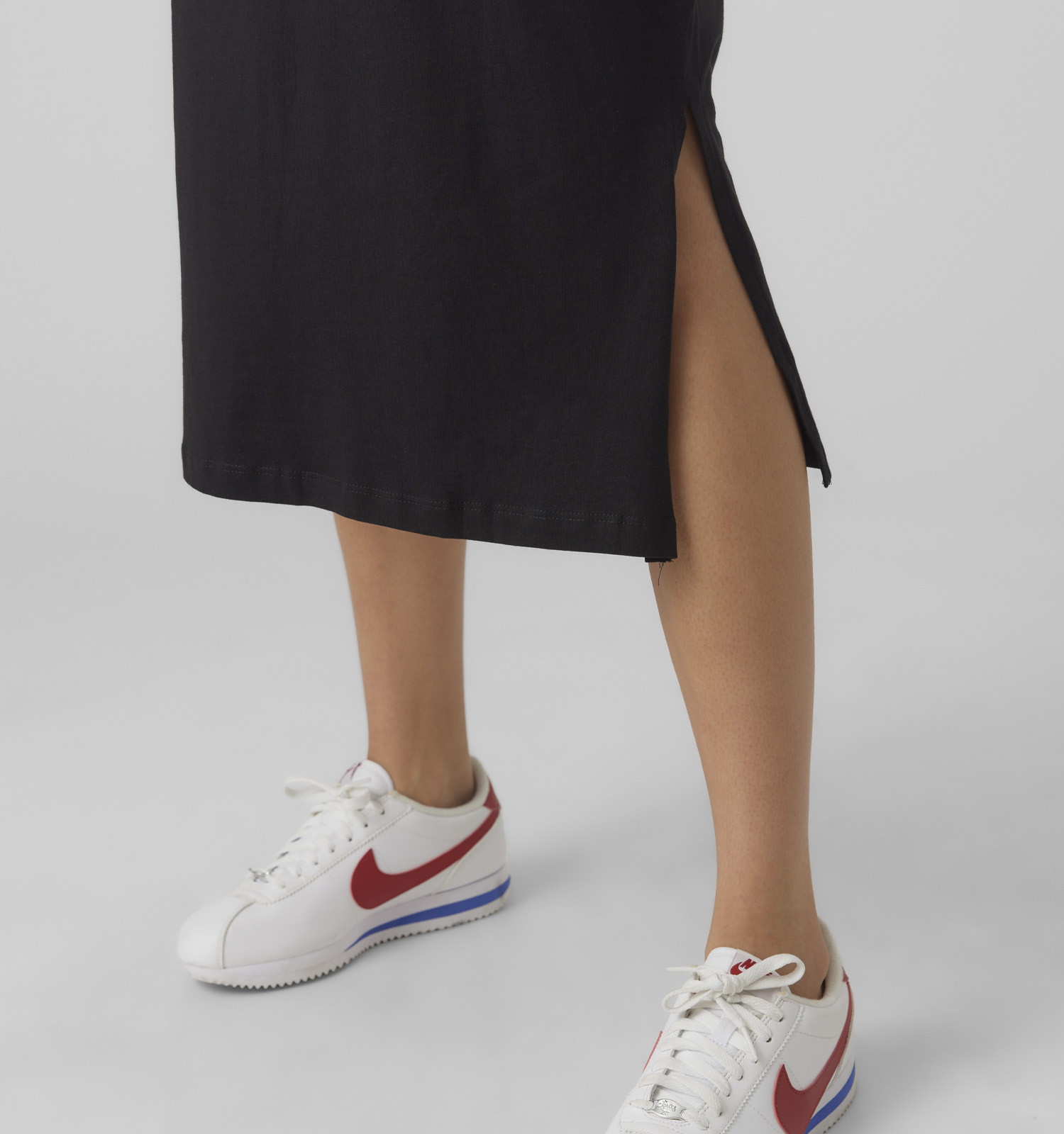 Deze Vero Moda jurk is de gulden middenweg voor als je niet kunt beslissen of je nu een korte of een lange jurk wilt aantrekken! Het leuke aan dit halflange zwarte model van Vero Moda is dat je hem het hele jaar door kunt dragen. In de zomer combineer je hem met sneakers, high heels of slippers, in de winter met een knusse panty en (enkel)laarsjes of boots. Een vest of jas die ergens tussen de taille en de heupen valt qua lengte, staat hier het best bij. Met zo'n bovenstuk wordt jouw zandloperfiguur extra geaccentueerd — dat staat heel mooi!
