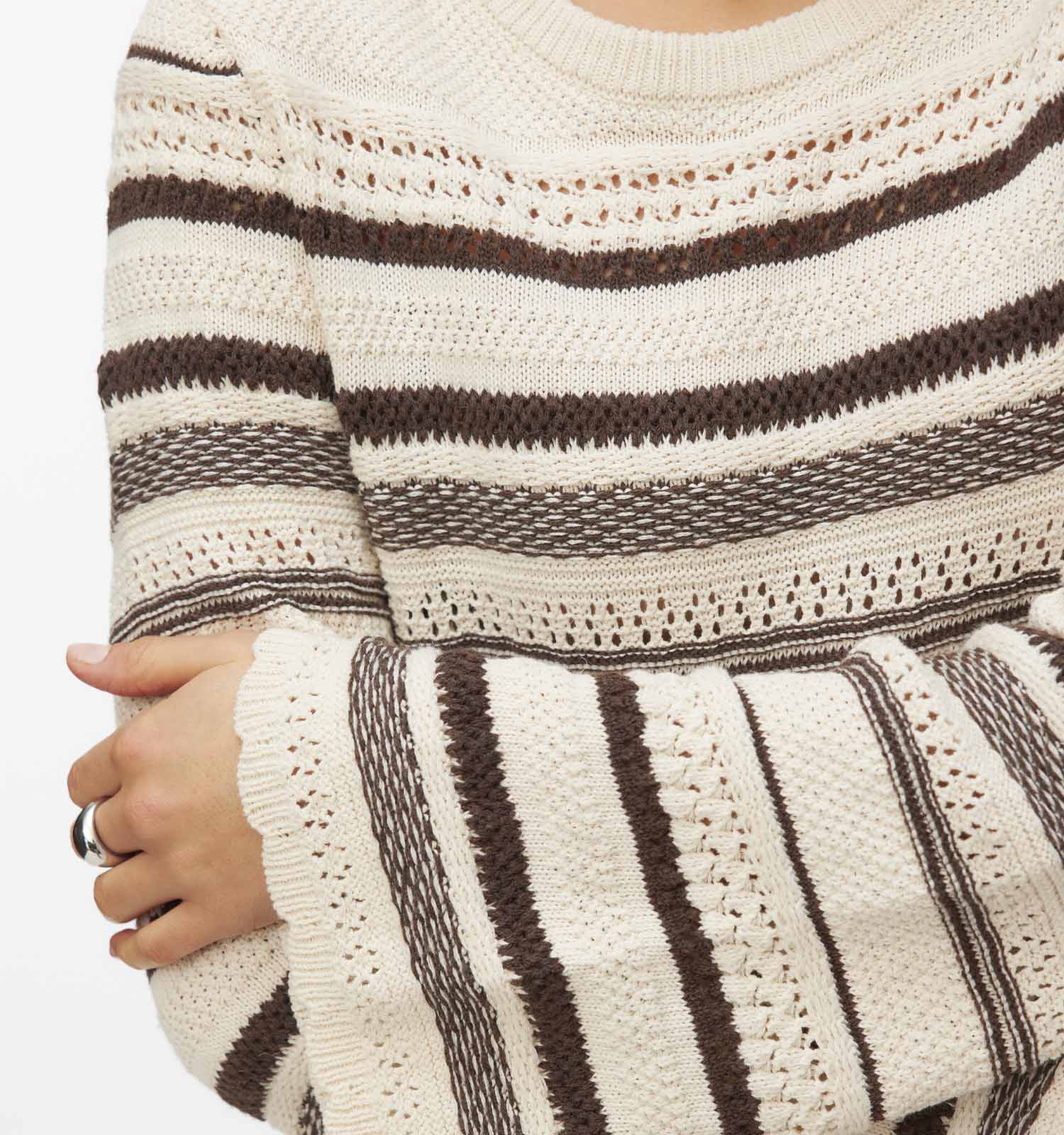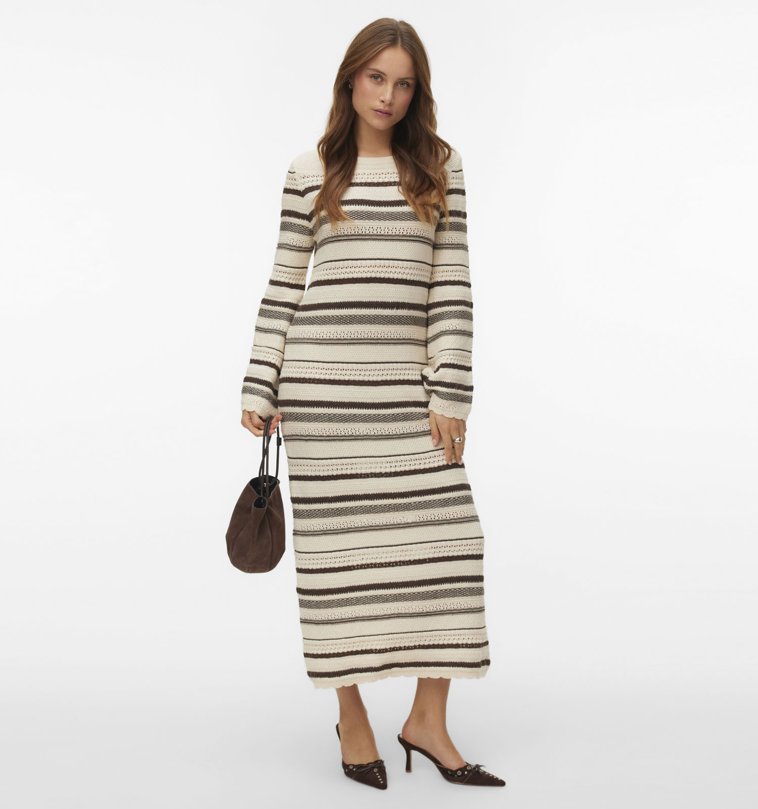 Vero Moda Riri Knit Beige Gestreepte Lange Jurk