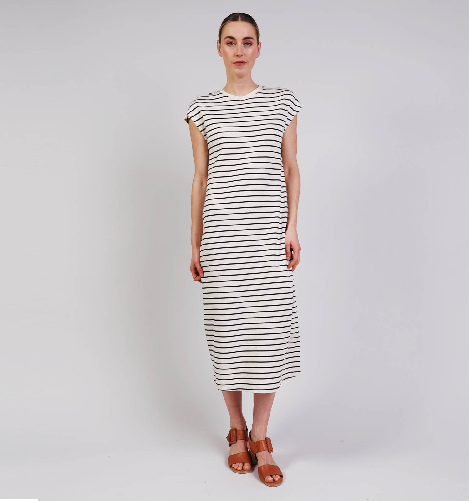 Deze midi-jurk met ronde hals van Vila heeft een prachtige zwarte kleur die makkelijk te combineren is. Dit halflange Vila kleedje is een veelzijdig stuk dat vooral mooi bij een neutraal kleurenpalet staat, zoals je favoriete witte sneakers of een denim jeansjas. Deze strepenjurk heeft bovendien een recht pasvorm voor optimaal comfort. Zo’n Vila jurk voelt altijd goed, wat je plannen ook zijn — een echte must-have!