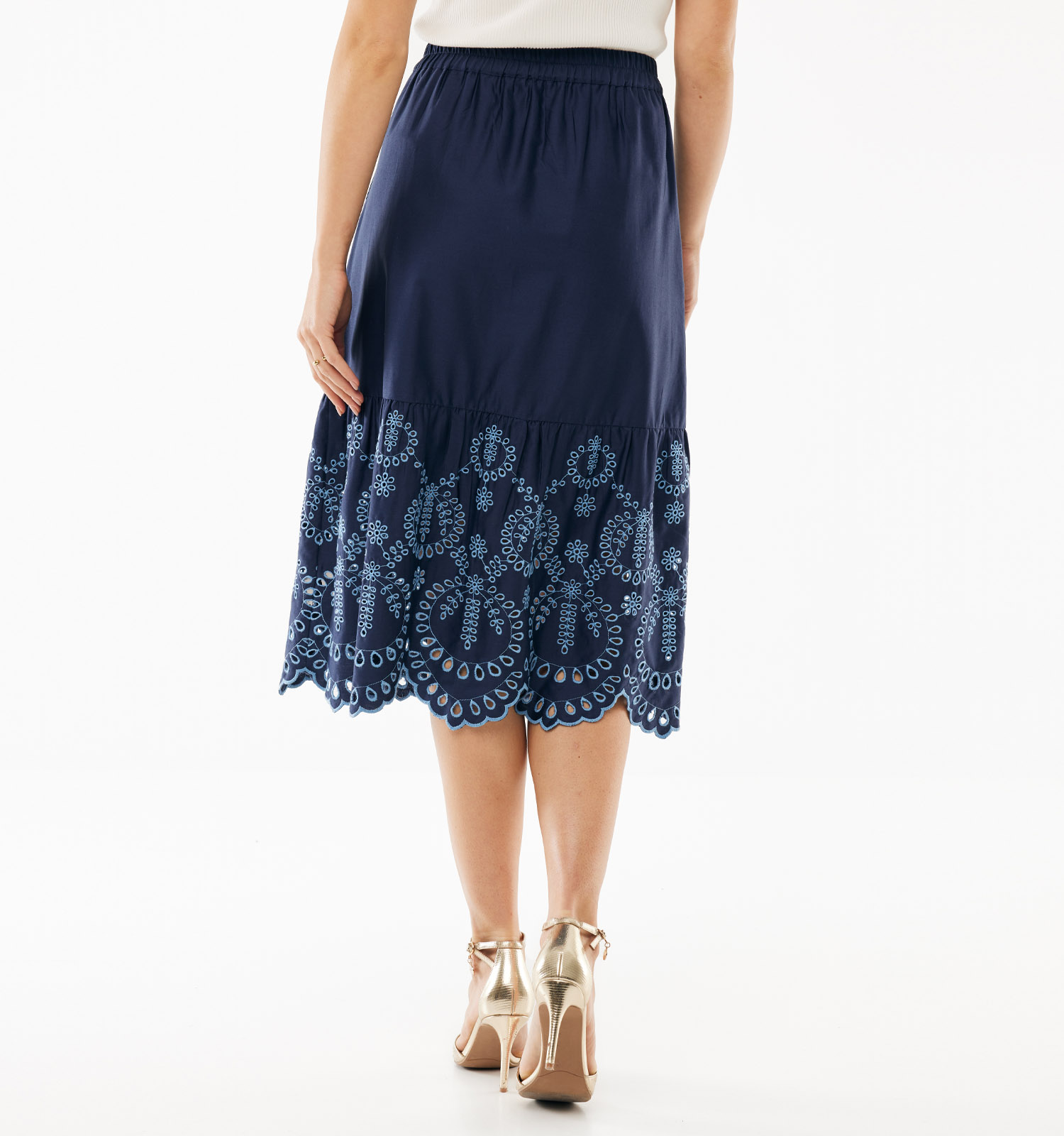 Mexx Poplin Embroidery Donkerblauwe Midi-Rok