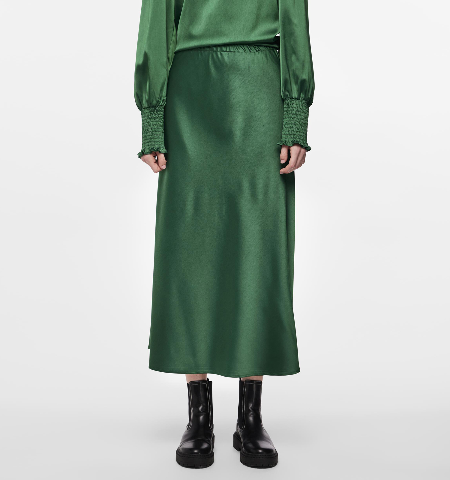Pieces Norella HW Ankle Groene Satijnen Rok