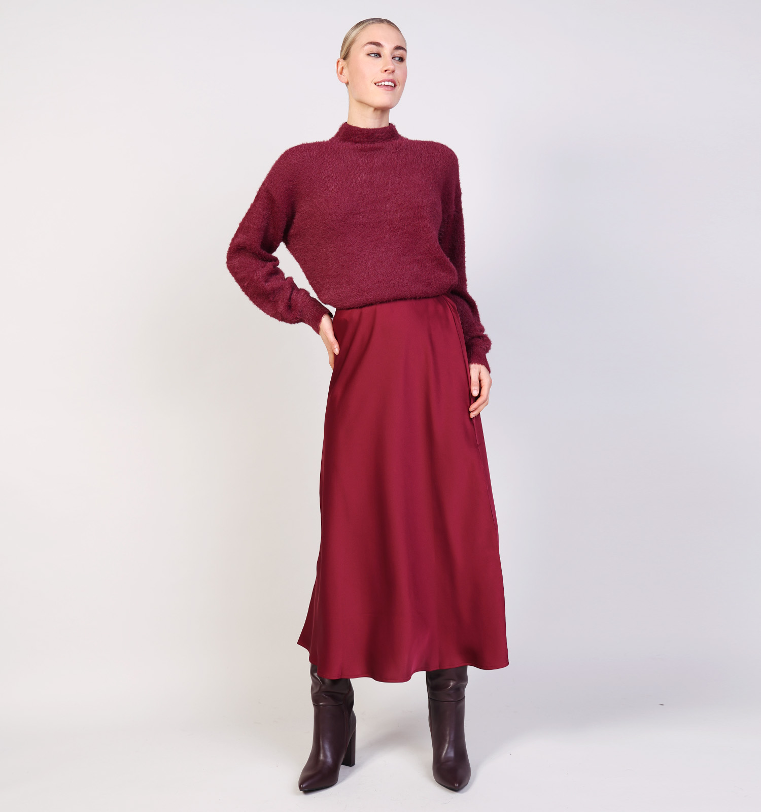 Het verfijnde silhouet van deze mid-rise damesrok zorgt ervoor dat elke lichaamsvorm mooi met dit model staat. Door de roklengte show je ook een stuk(je) van jouw benen, dat maakt het geheel meteen iets speelser. Style deze Sisters Point rok met een T-shirt, blouse of trui in dezelfde bordeaux kleur voor een trendy ton-sur-ton look. Dat is de nummer één truc van modestylisten om je optisch langer te doen lijken.