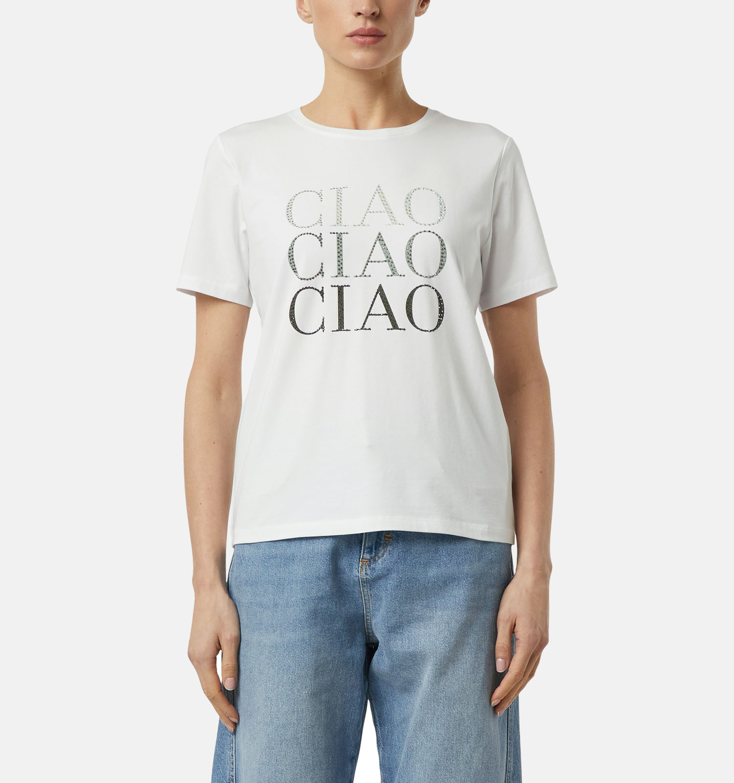 Deze T-shirt heeft korte mouwen, waardoor je het hele jaar door van dit fijne exemplaar kan genieten! Ook interessant om te weten: dit comma-model valt recht qua pasvorm. Het staat dus ieder lichaamstype prachtig. Deze witte dames-T-shirt heeft een mooie ronde hals die je eventueel prachtig kan accentueren met je favoriete kettingen.