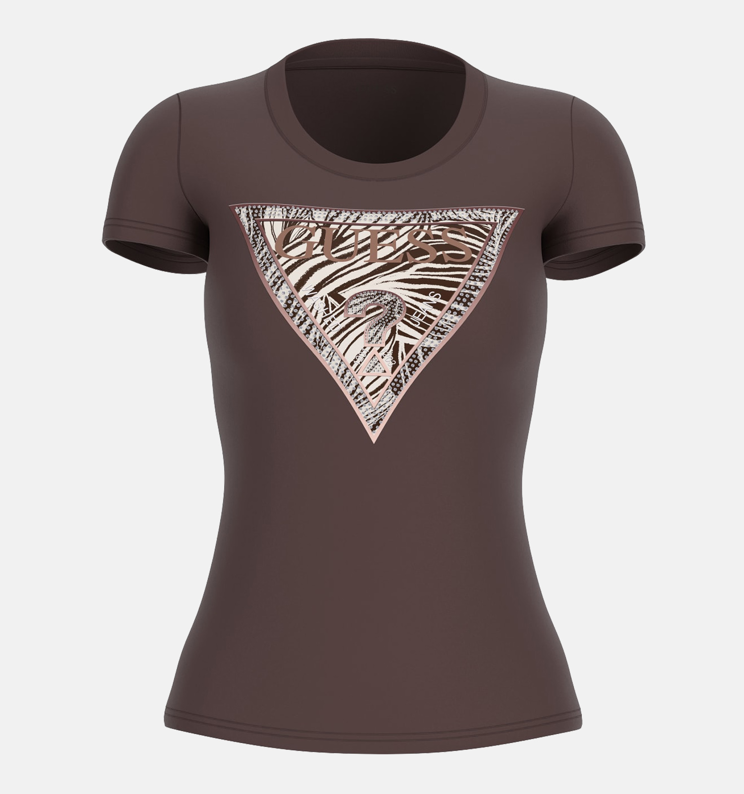 Deze T-shirt heeft korte mouwen, waardoor je het hele jaar door van dit fijne exemplaar kan genieten! Ook interessant om te weten: dit Guess-model valt recht qua pasvorm. Het staat dus ieder lichaamstype prachtig. Deze bruine dames-T-shirt heeft een mooie ronde hals die je eventueel prachtig kan accentueren met je favoriete kettingen.