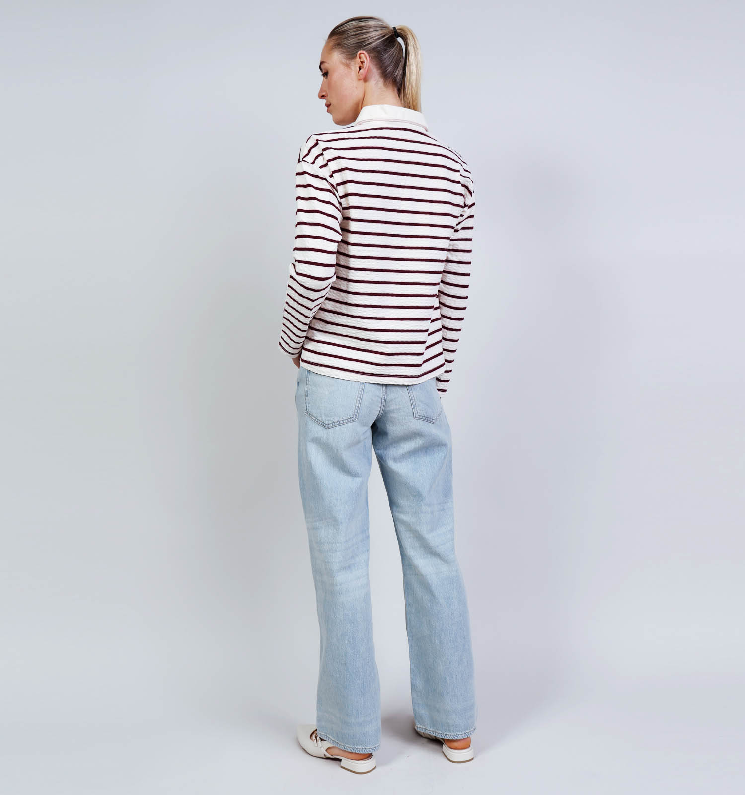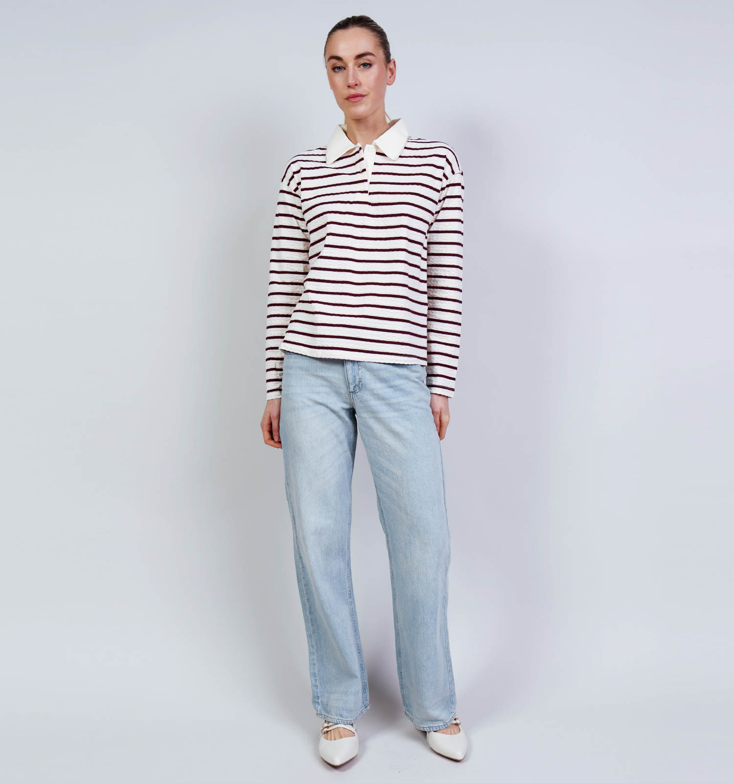 Desires Maiken Beige/Bordeaux Gestreepte Polo T-shirt
