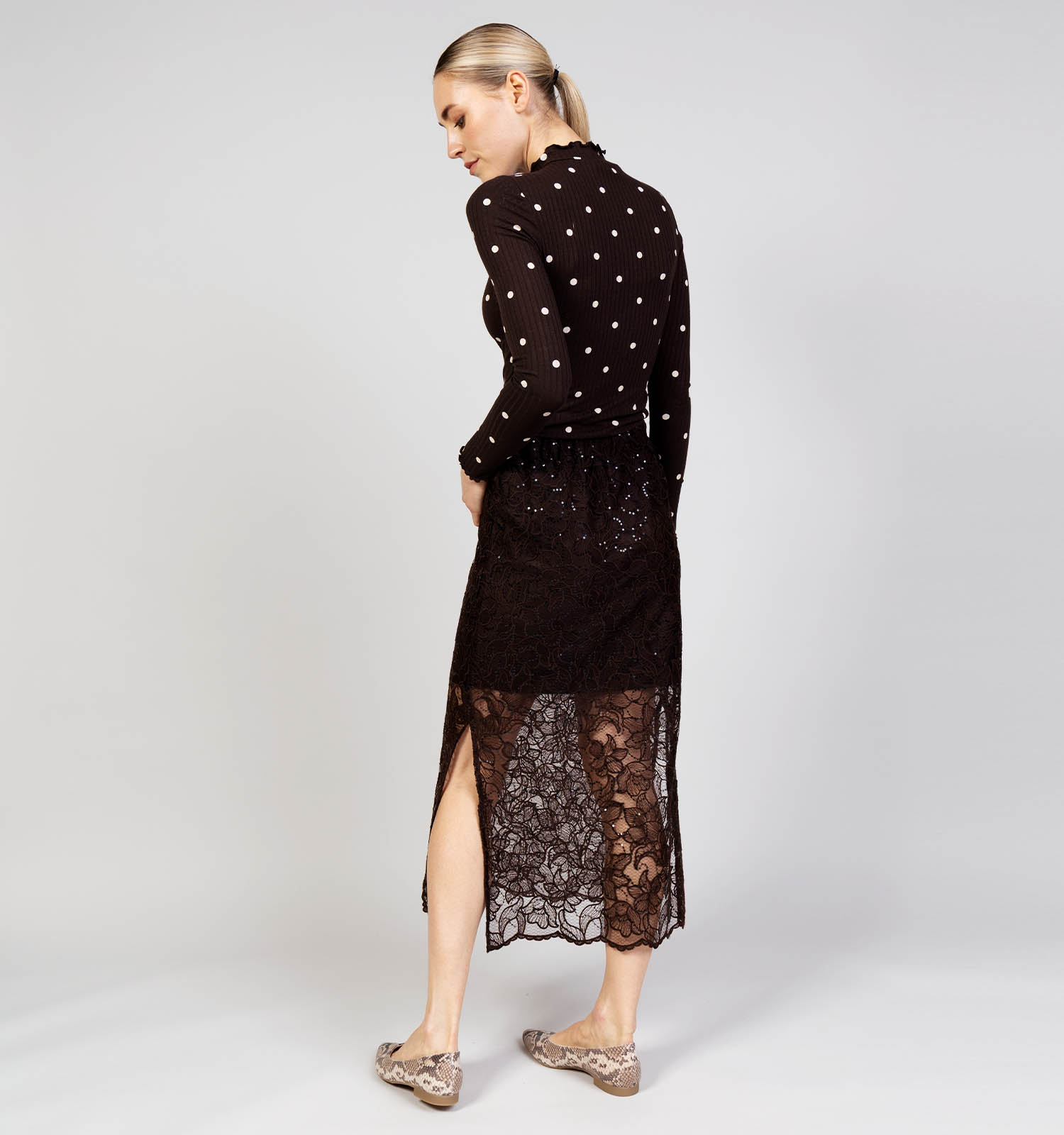 JDY Fransiska Donkerbruine T-shirt met Lange Mouwen