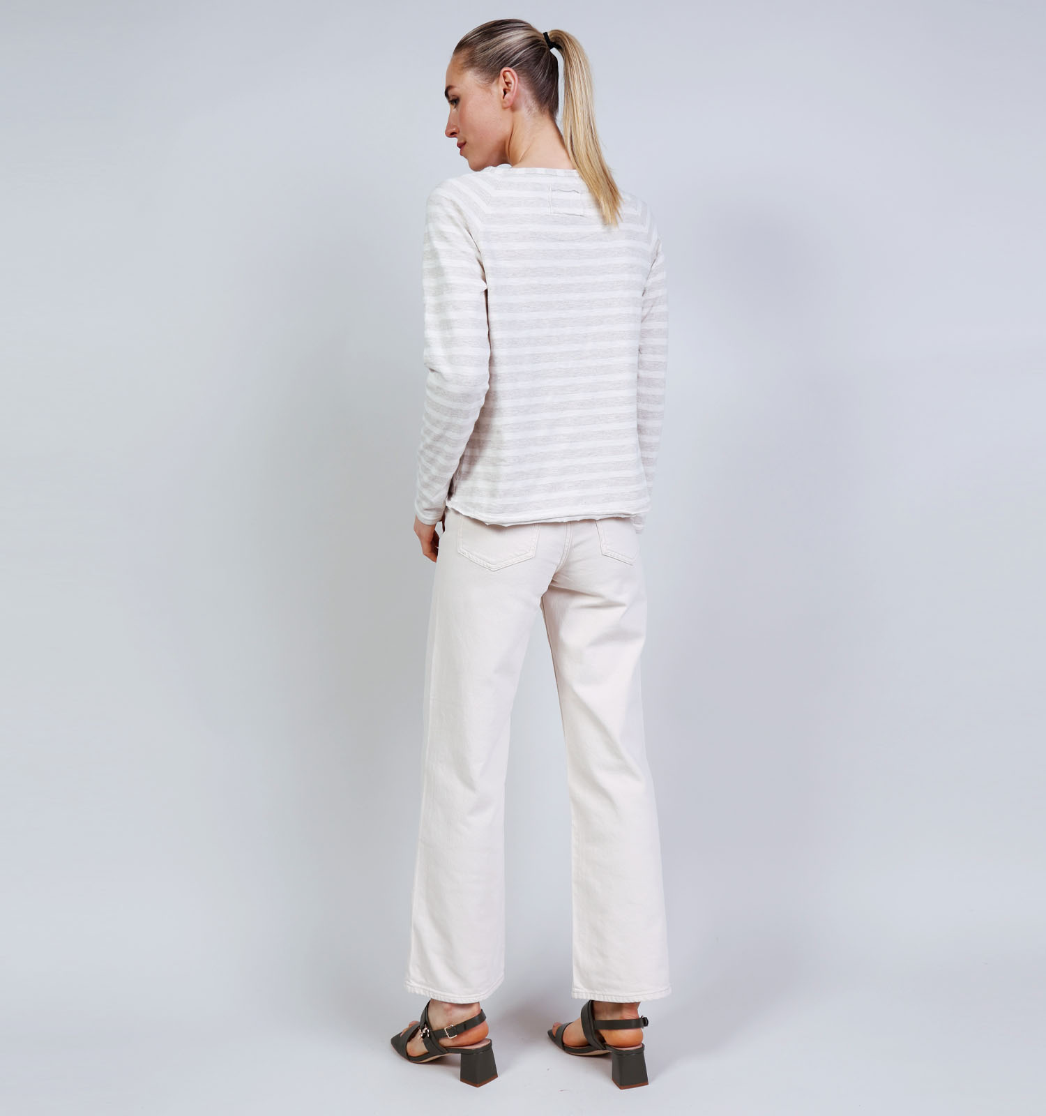 The Shirt Project Grijze T-shirt met Lange Mouwen Gestreept