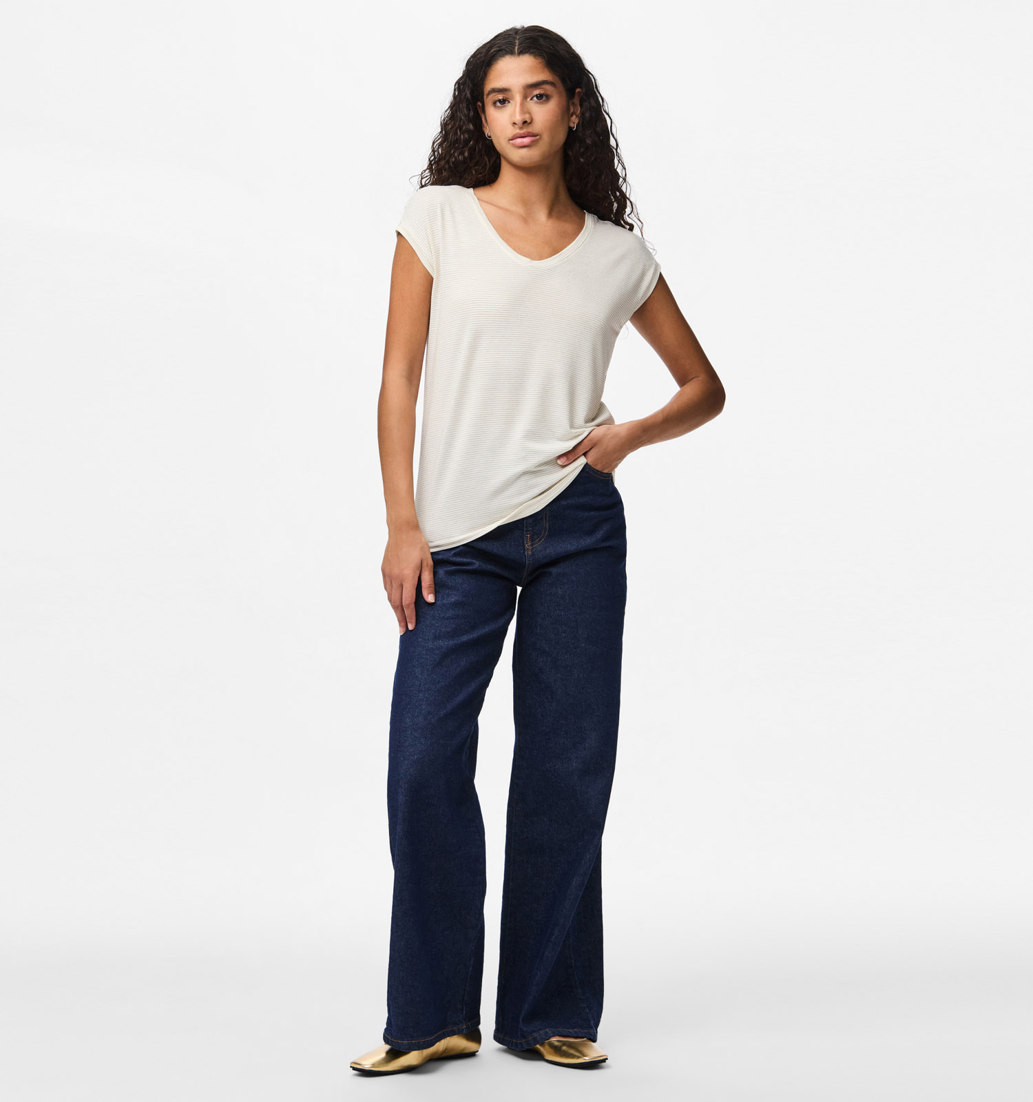 Deze T-shirt heeft korte mouwen, waardoor je het hele jaar door van dit fijne exemplaar kan genieten! Ook interessant om te weten: dit Pieces-model valt recht qua pasvorm. Het staat dus ieder lichaamstype prachtig. Deze witte dames-T-shirt heeft een mooie v-hals die je eventueel prachtig kan accentueren met je favoriete kettingen.