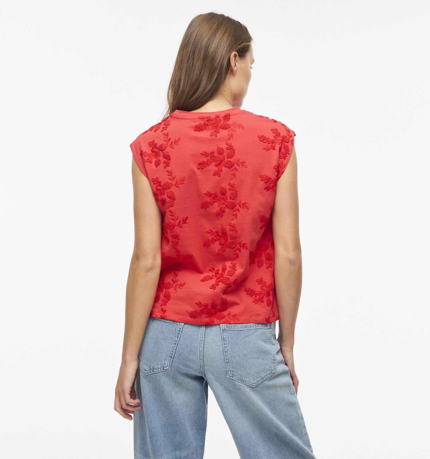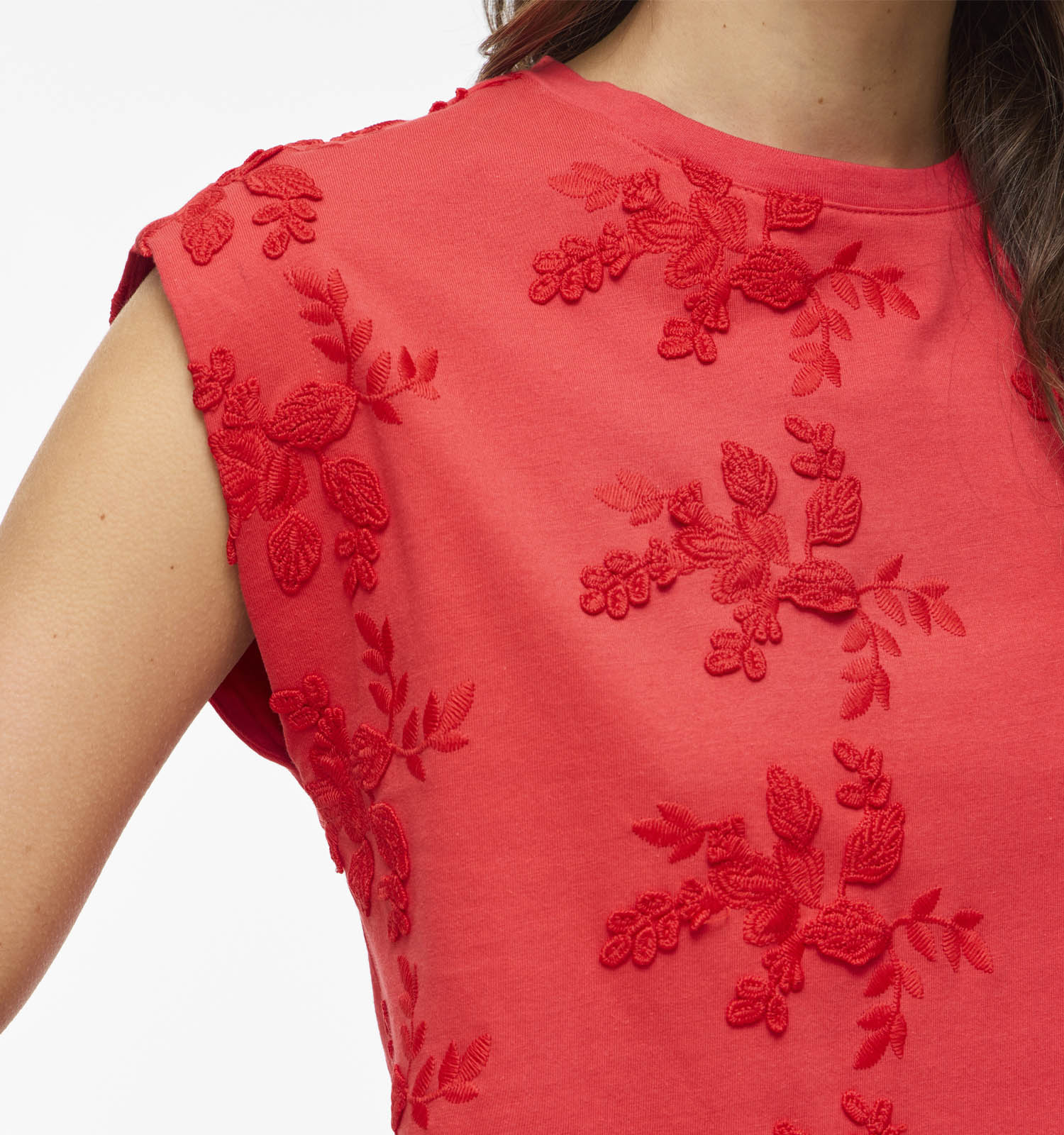 Deze T-shirt heeft korte mouwen, waardoor je het hele jaar door van dit fijne exemplaar kan genieten! Ook interessant om te weten: dit Vila-model valt aansluitend qua pasvorm. Het staat dus ieder lichaamstype prachtig. Deze rode dames-T-shirt heeft een mooie ronde hals die je eventueel prachtig kan accentueren met je favoriete kettingen.