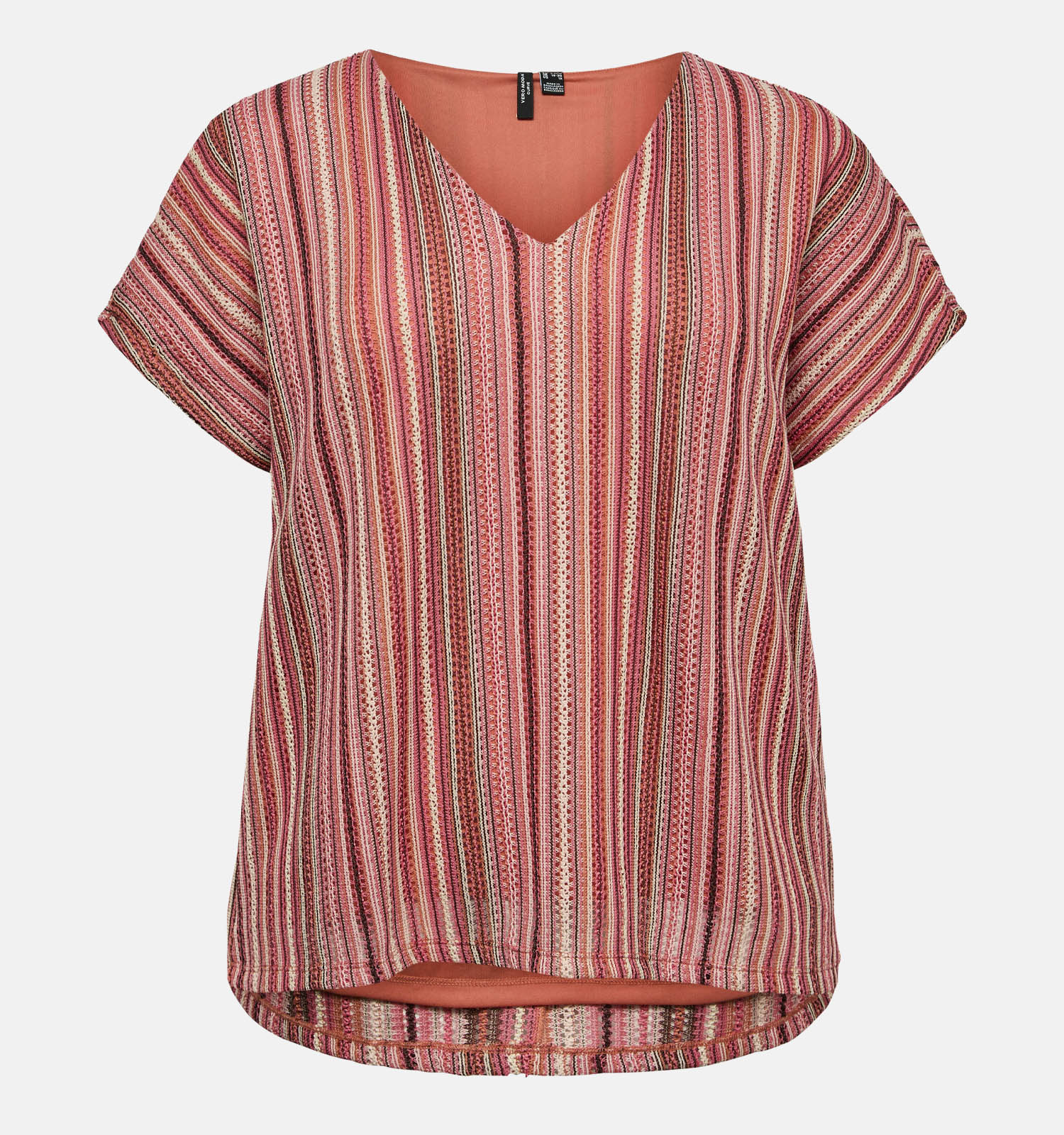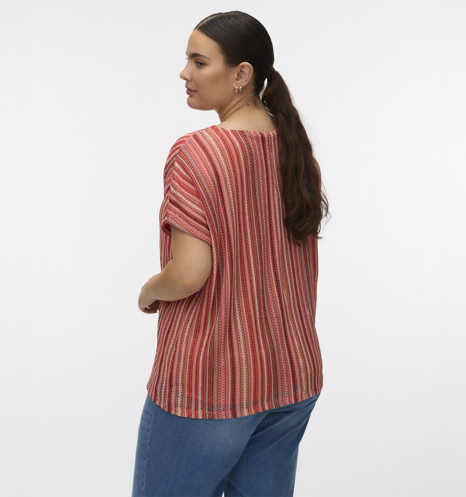 Vero Moda Curve Demi V-Neck Roze/Rode T-shirt