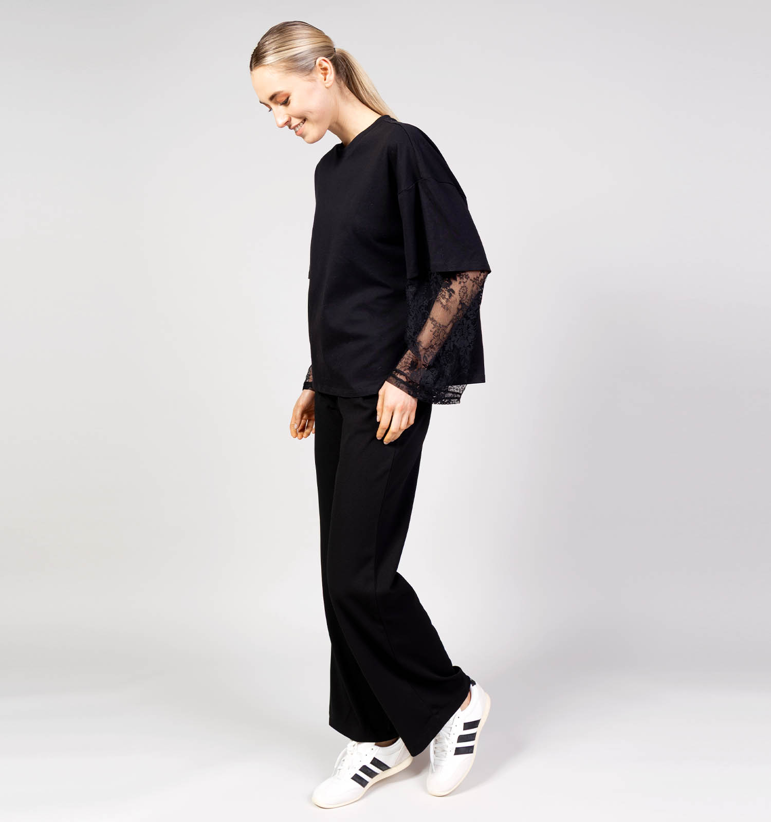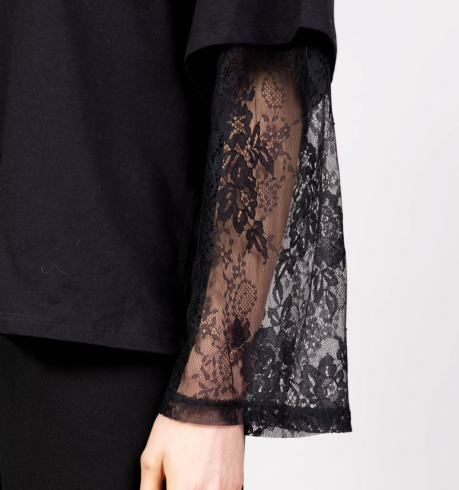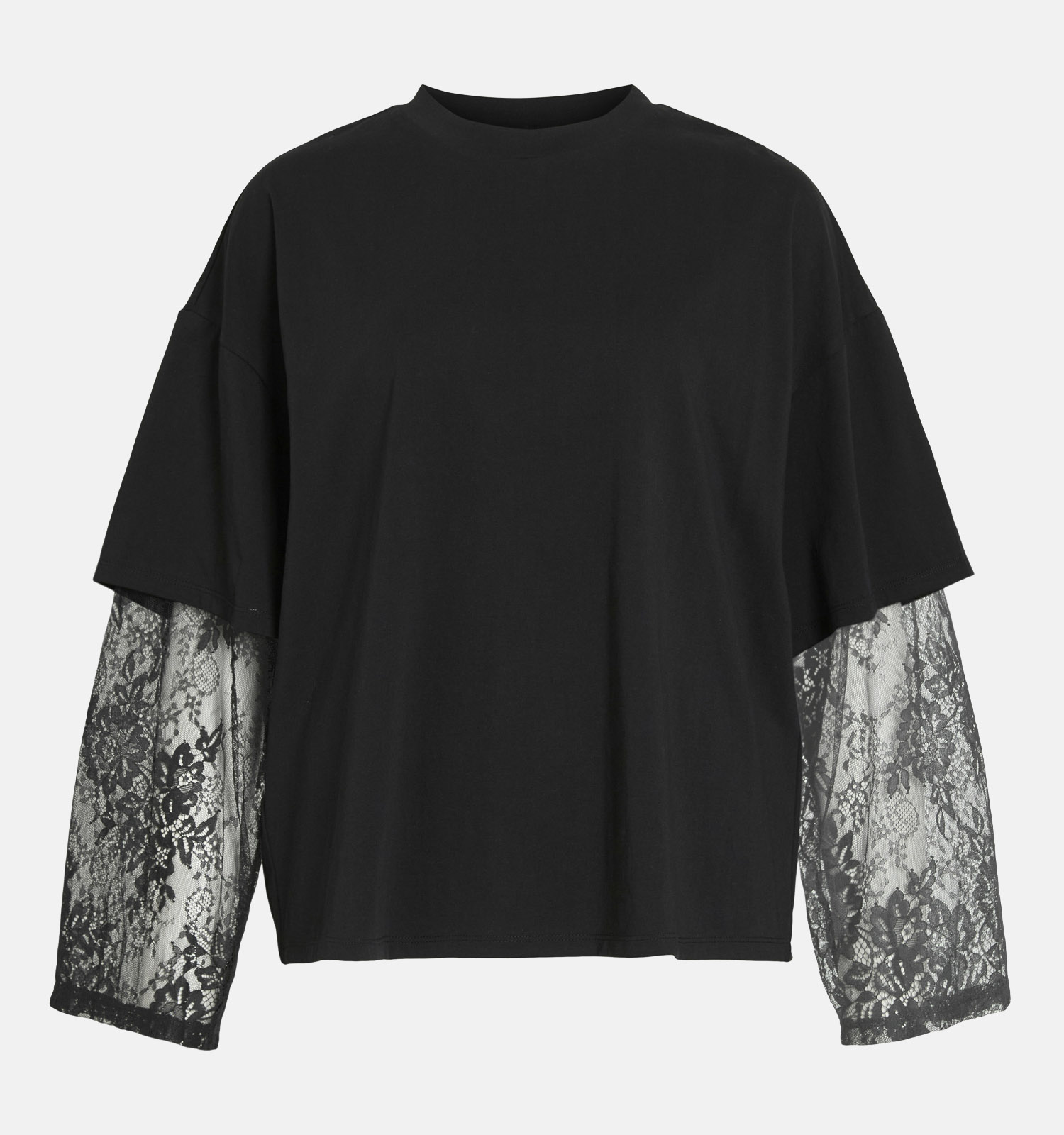 Vila Abia Lace Sleeve Zwarte T-shirt