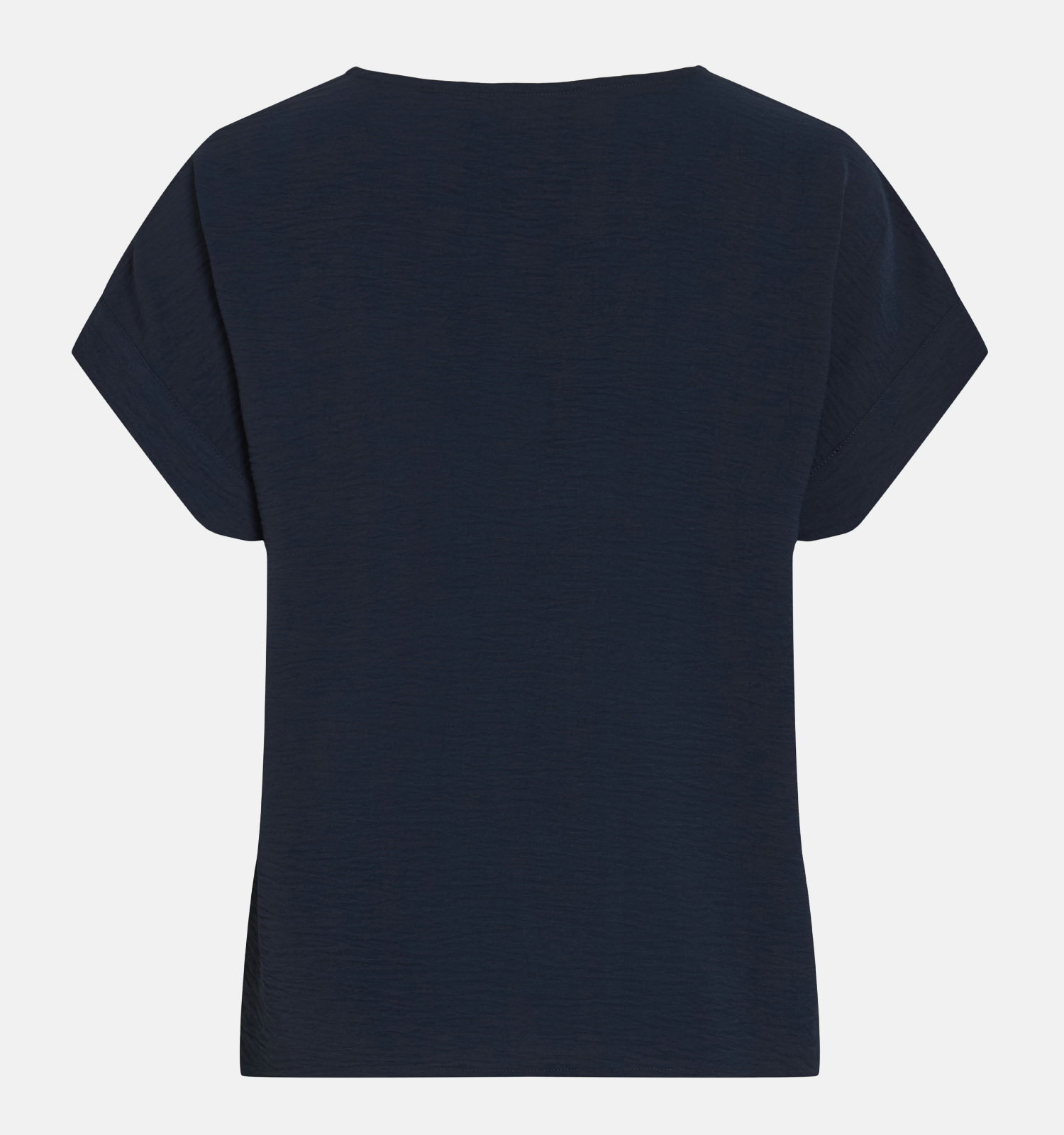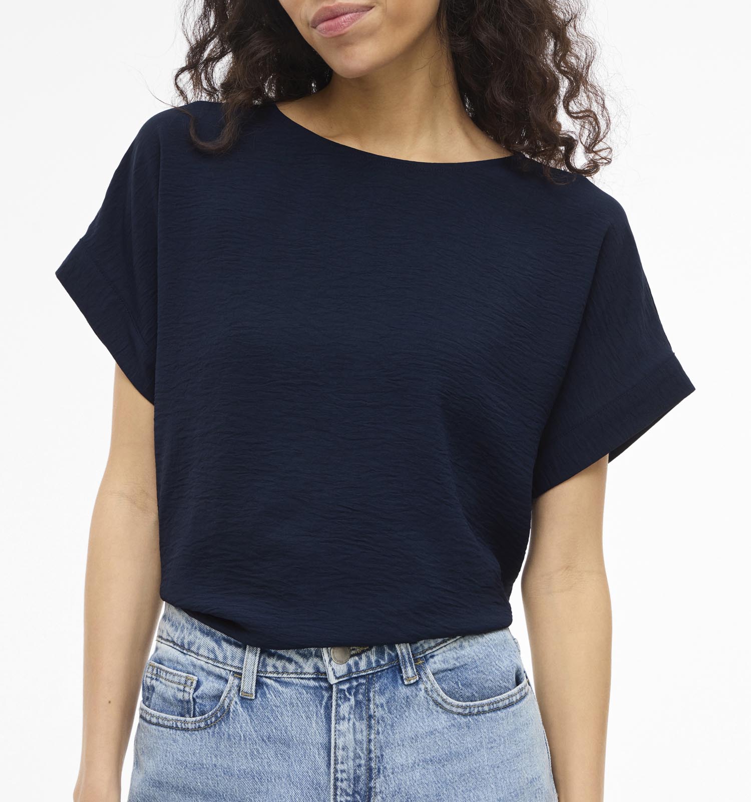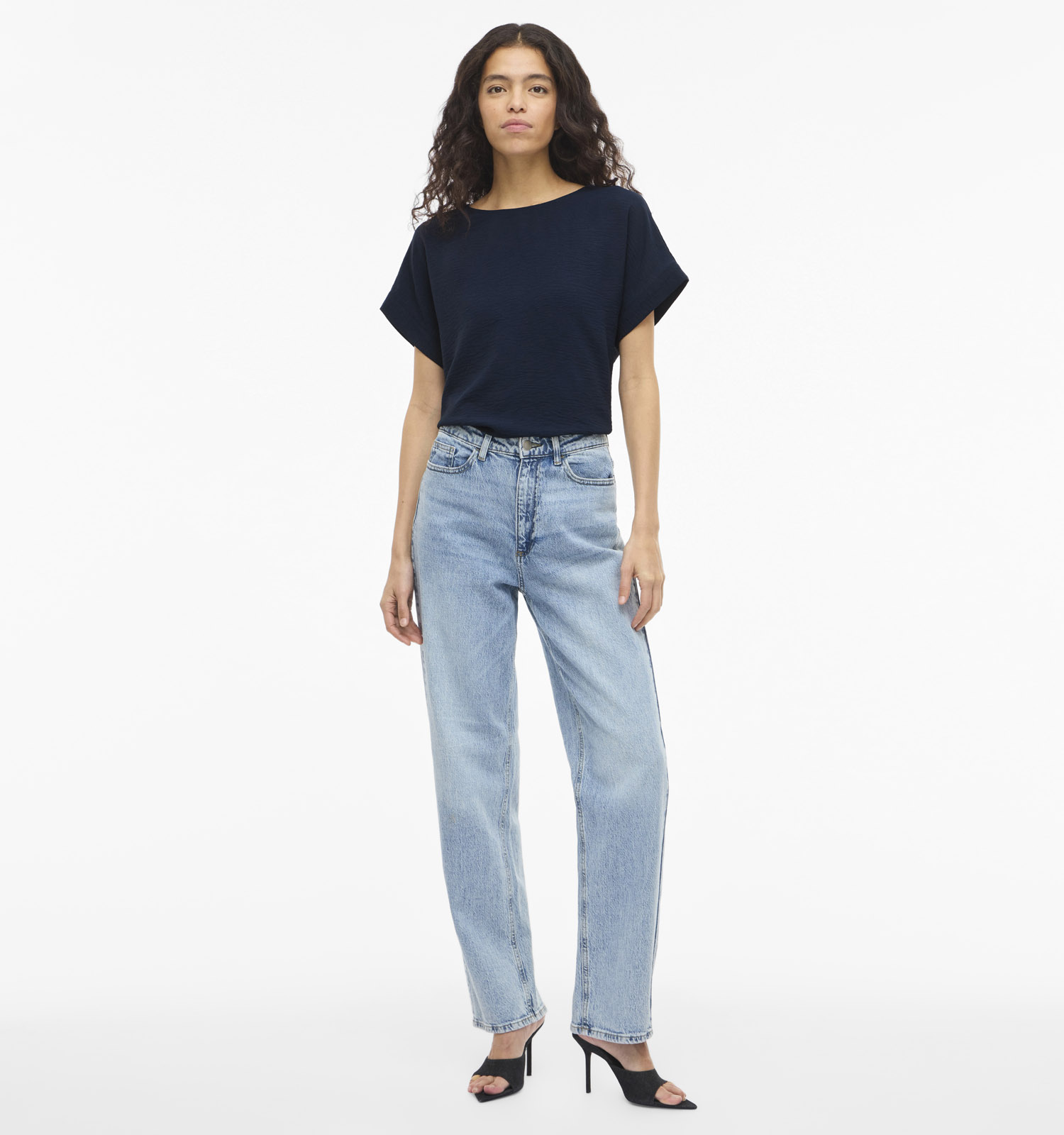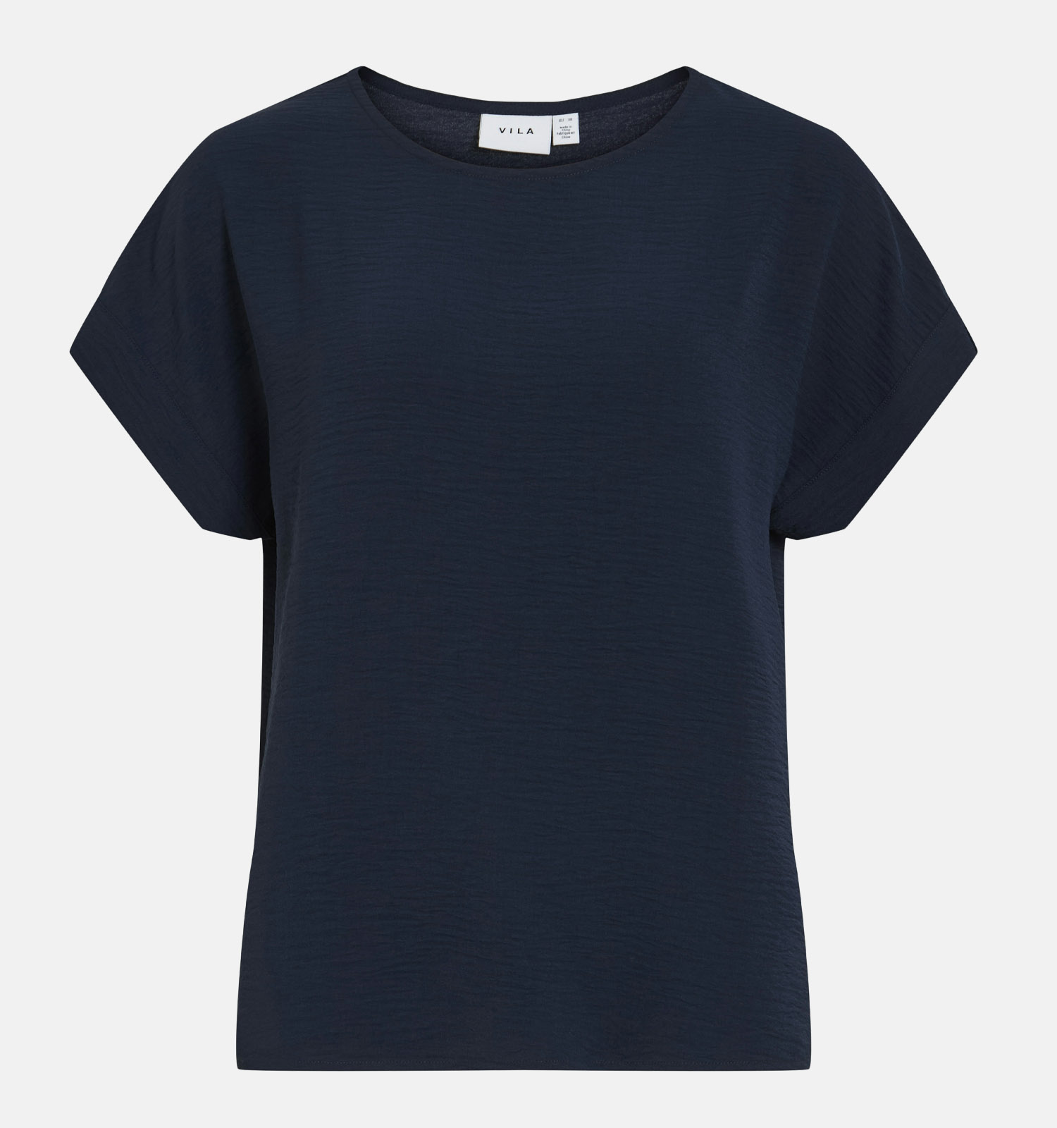 Deze T-shirt heeft korte mouwen, waardoor je het hele jaar door van dit fijne exemplaar kan genieten! Ook interessant om te weten: dit Vila-model valt recht qua pasvorm. Het staat dus ieder lichaamstype prachtig. Deze blauwe dames-T-shirt heeft een mooie ronde hals die je eventueel prachtig kan accentueren met je favoriete kettingen.
