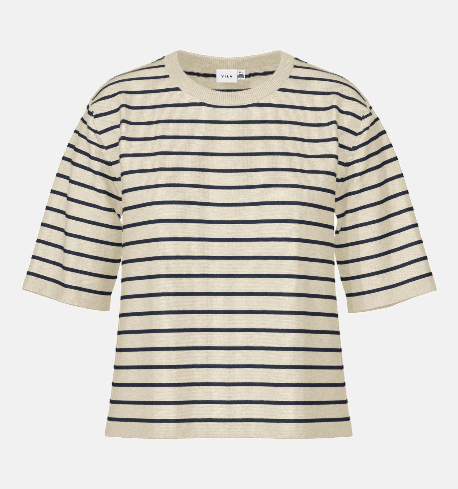 Vila Malu Lichtbeige/Donkerblauwe Gestreepte T-shirt
