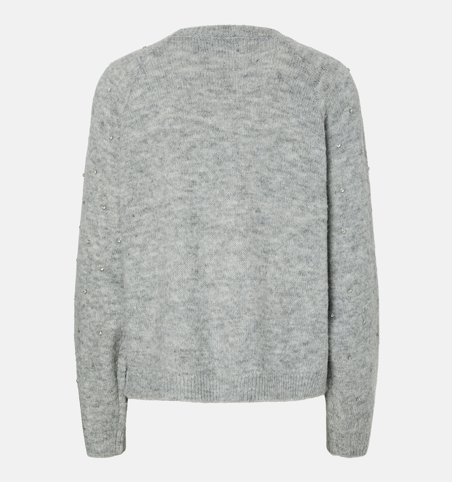 Deze damestrui in de kleur grijs heeft een ronde hals en lange mouwen.