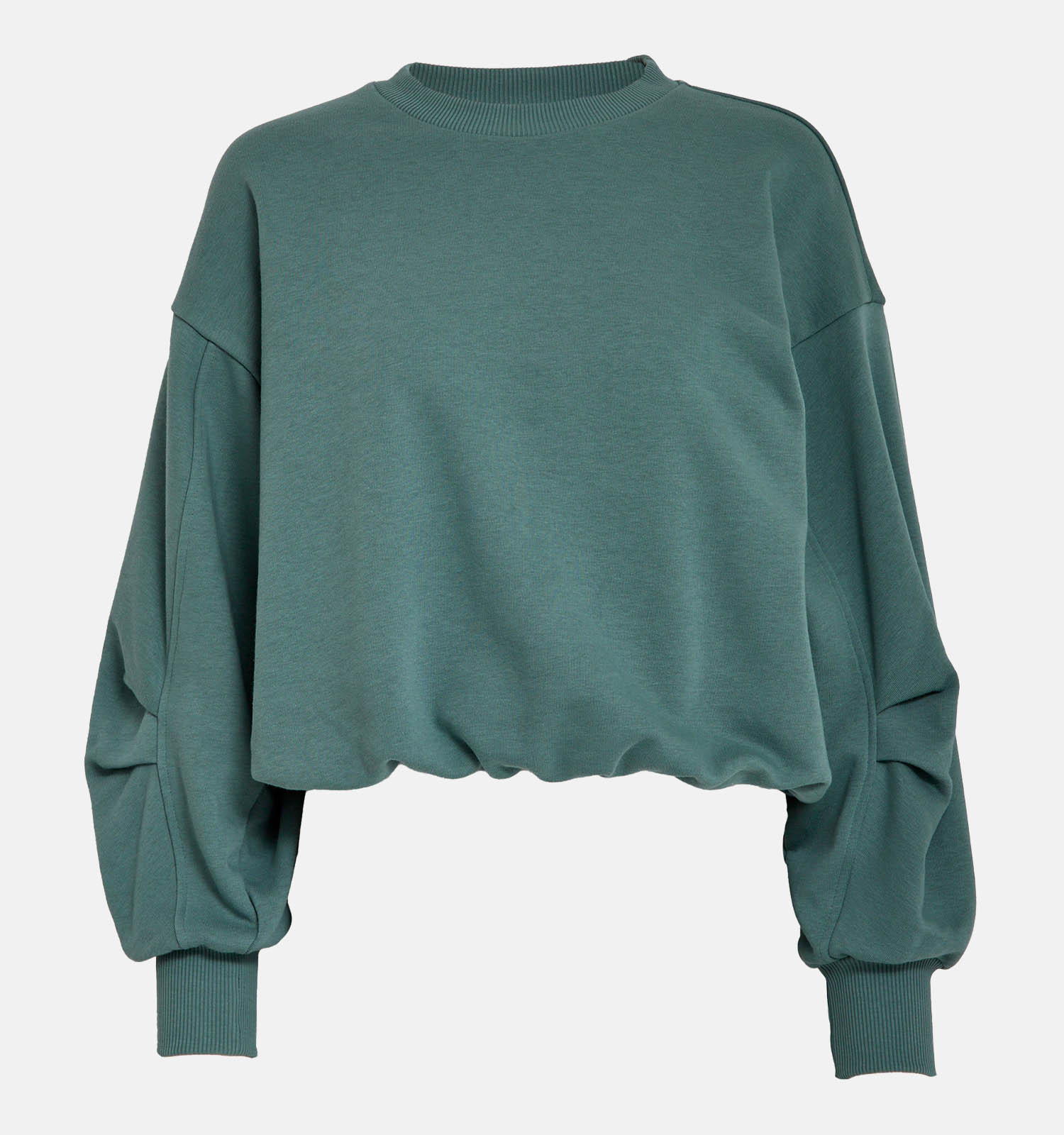 Deze sporttrui voor dames in de kleur groen heeft een recht pasvorm, wat voldoende bewegingsruimte biedt en een silhouet creëert dat altijd goed staat.