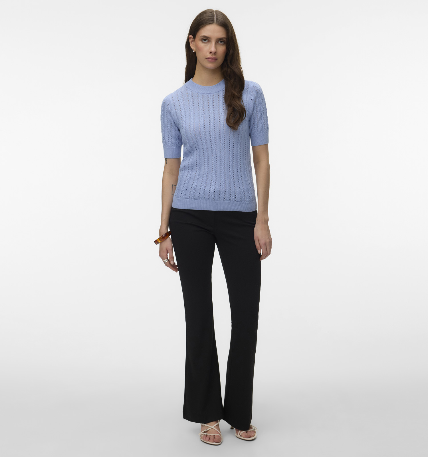 Een andere trendy combinatie is deze trui over een jurk. Trek je favoriete jurkje aan en doe vervolgens een fijne broeksriem op de hoogte waar jij deze Vero Moda trui wilt laten eindigen. Dat is een kwestie van smaak: dat kan in je taille zijn, net boven de heupen of ergens daartussen. De onderkant van de Vero Moda trui stop je vervolgens achter de riem, en de bovenkant blouse je zo op. Het resultaat? Jij ziet er extra stylish uit!