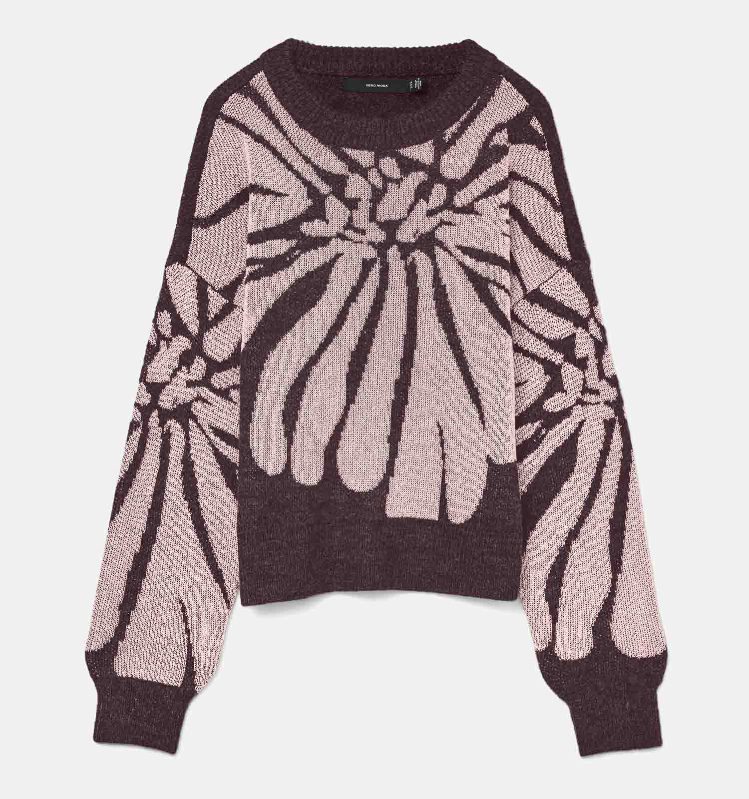 Deze comfortabele damestrui met bloemenprintpatroon is vervaardigd uit kwalitatief acryl, elastaan, nylon, polyester, viscose. Deze bordeaux trui van het topmerk Vero Moda scoort niet alleen een tien op tien op comfortvlak… Het is ook een tijdloos trendy model en dé kers op de taart van elke outfit!
