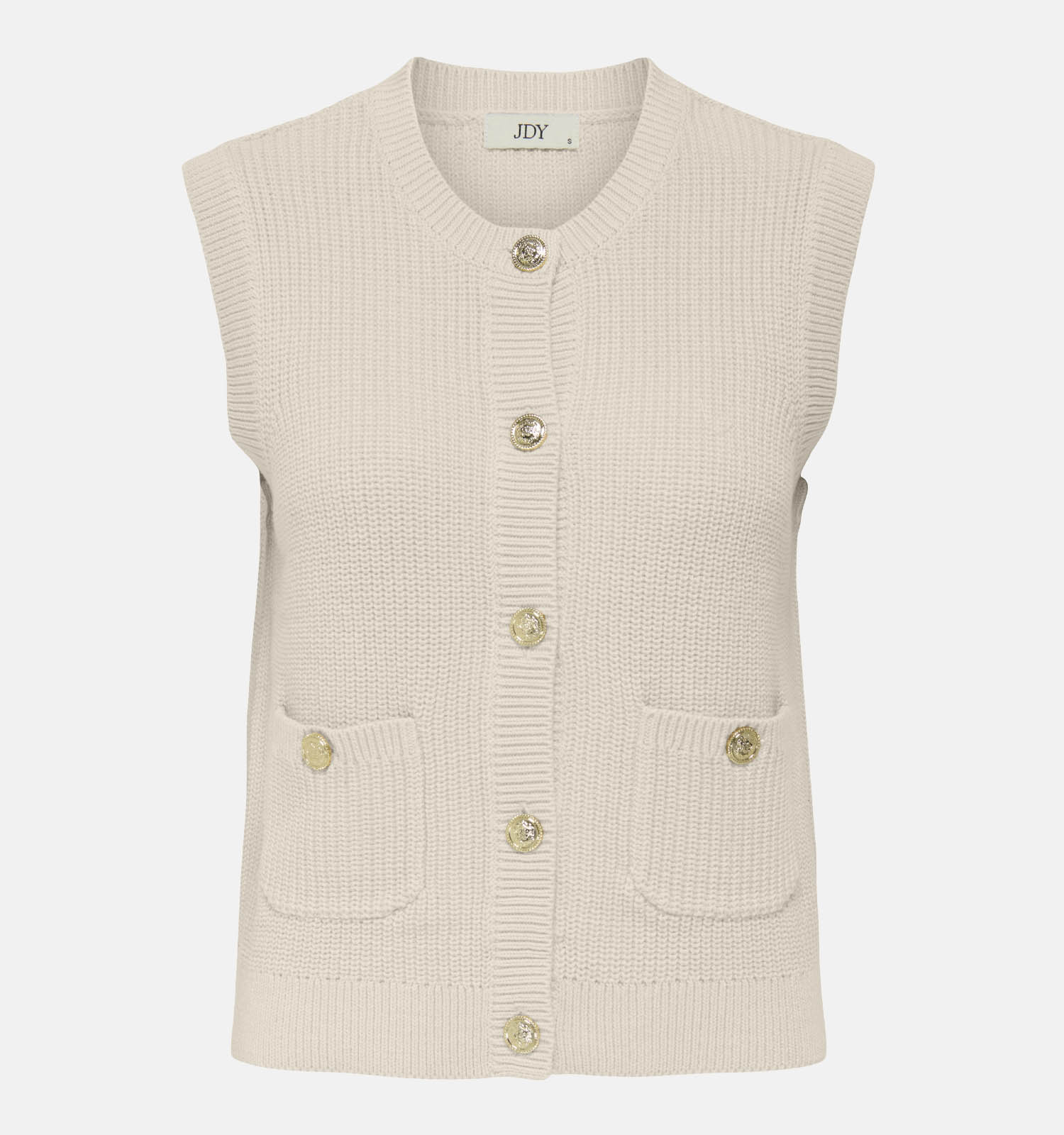 JDY Stella Ecru Mouwloze Gilet Gouden Knopen
