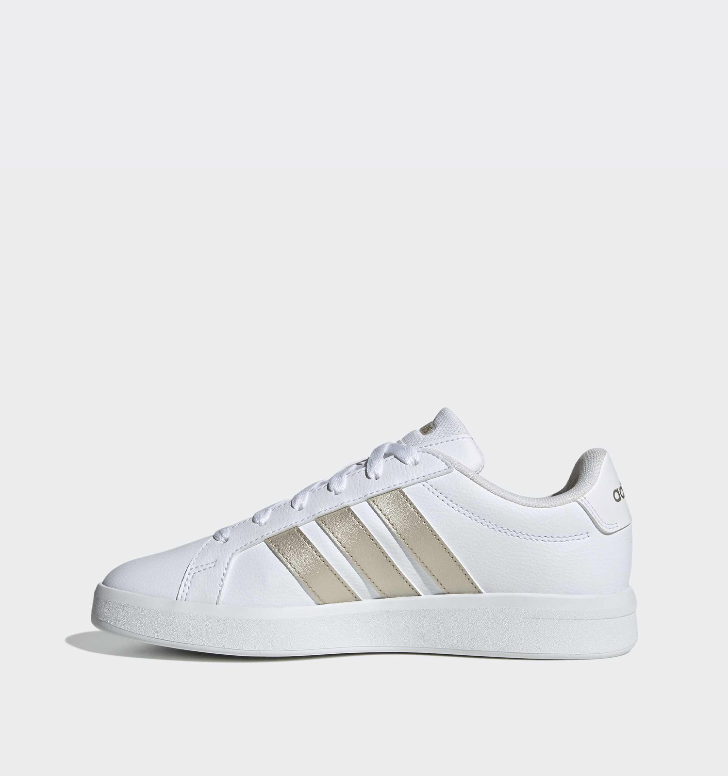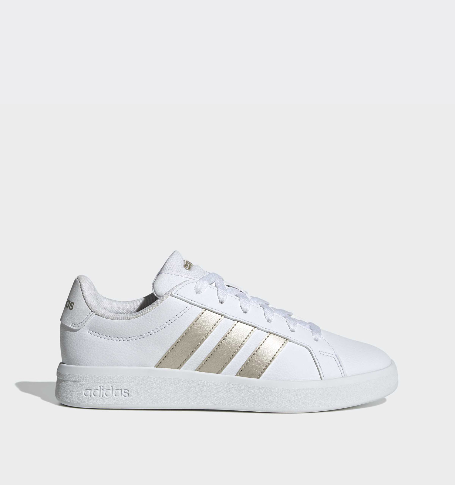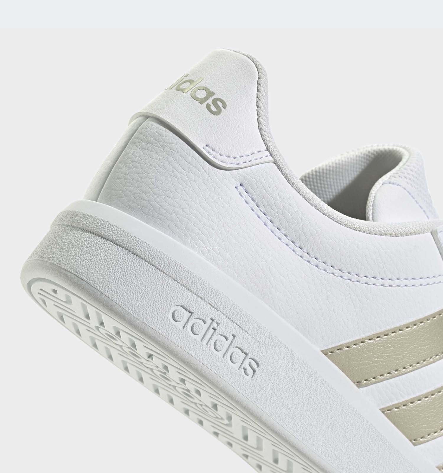 Damessneakers zoals dit witte paar van adidas zijn goede basics om in jouw schoenenkast te hebben. Deze adidas Grand Court sneakers zijn iconisch, trendy en comfortabel. Deze adidas damesschoenen combineren al het comfort van een sportschoen met die trendy look van een sneaker. Dat heet dan “the best of both worlds”!