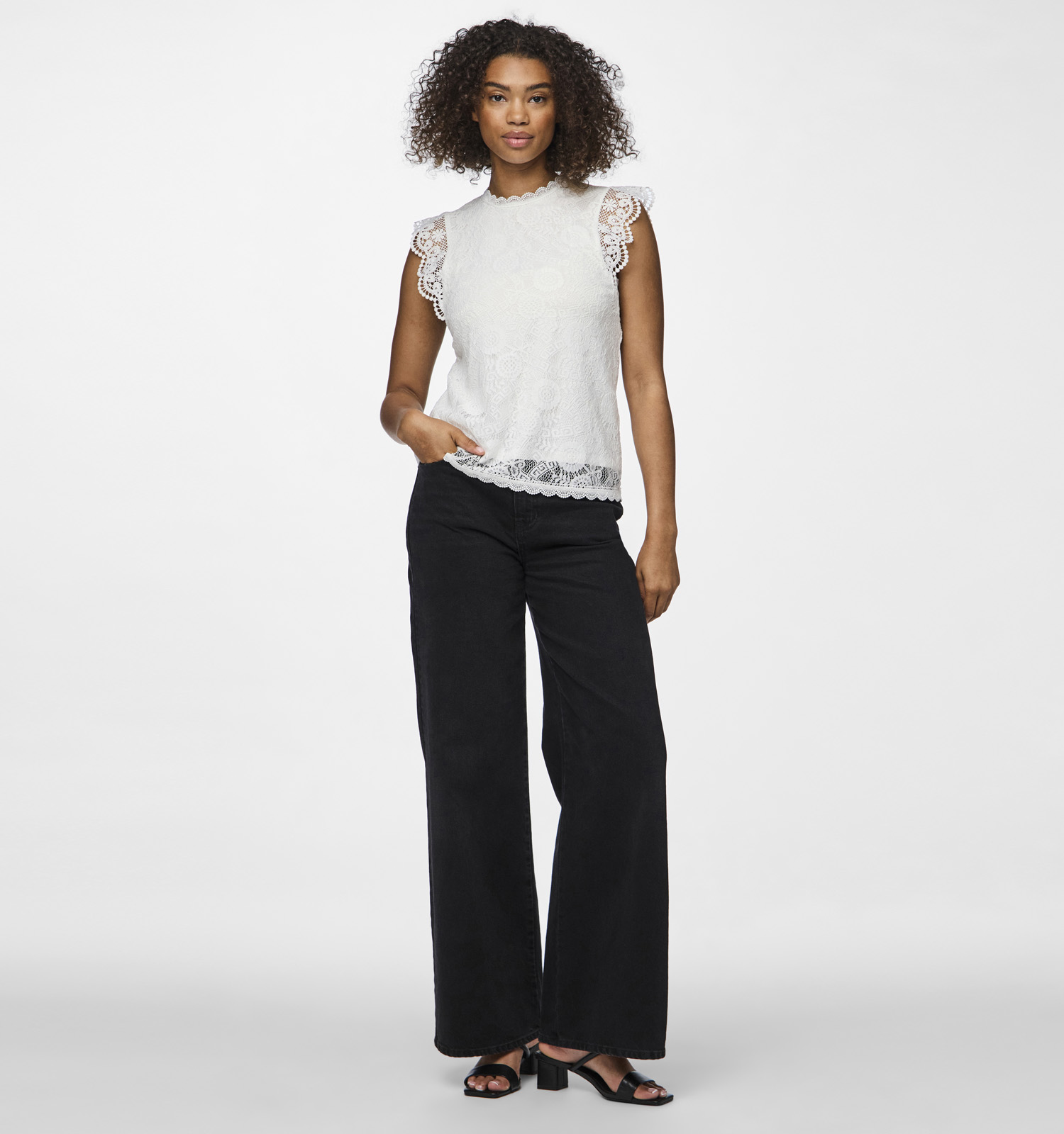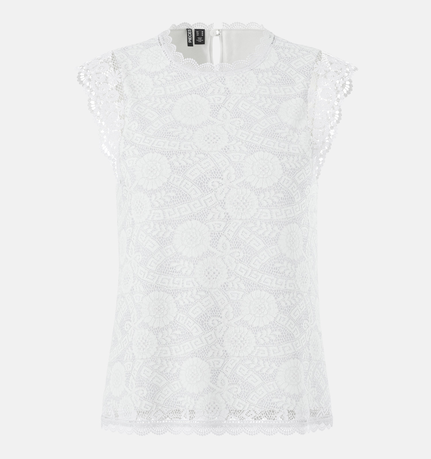 Pieces Olline Lace Witte Blouse zonder mouwen