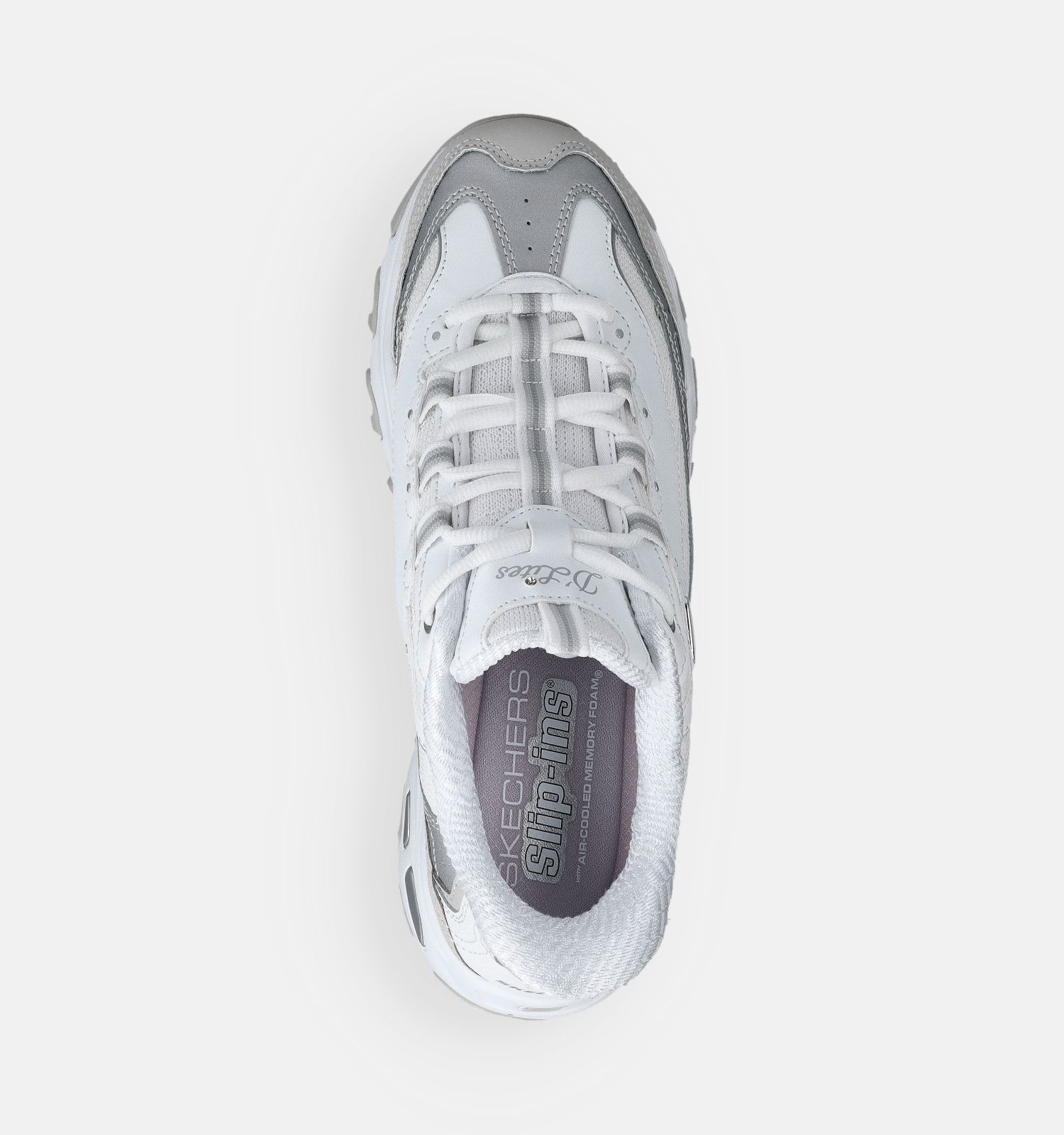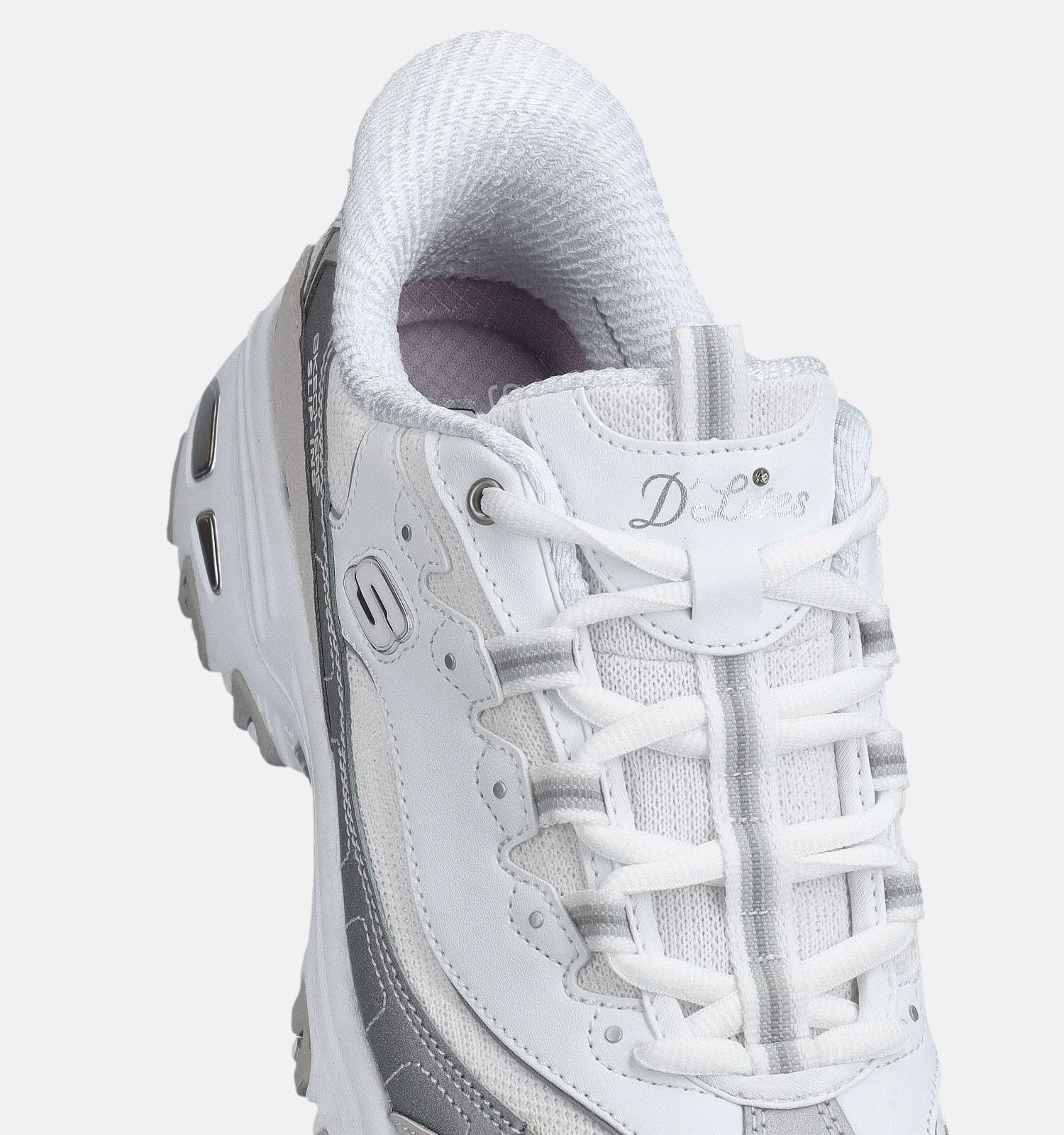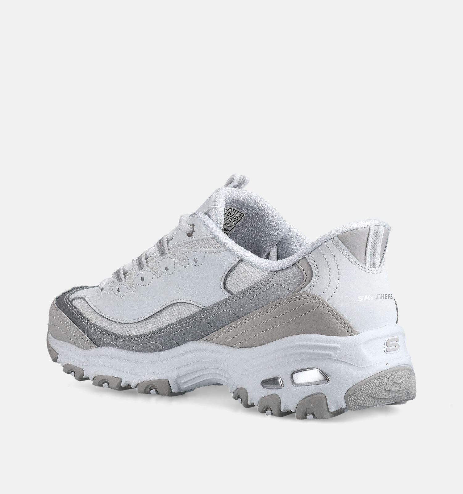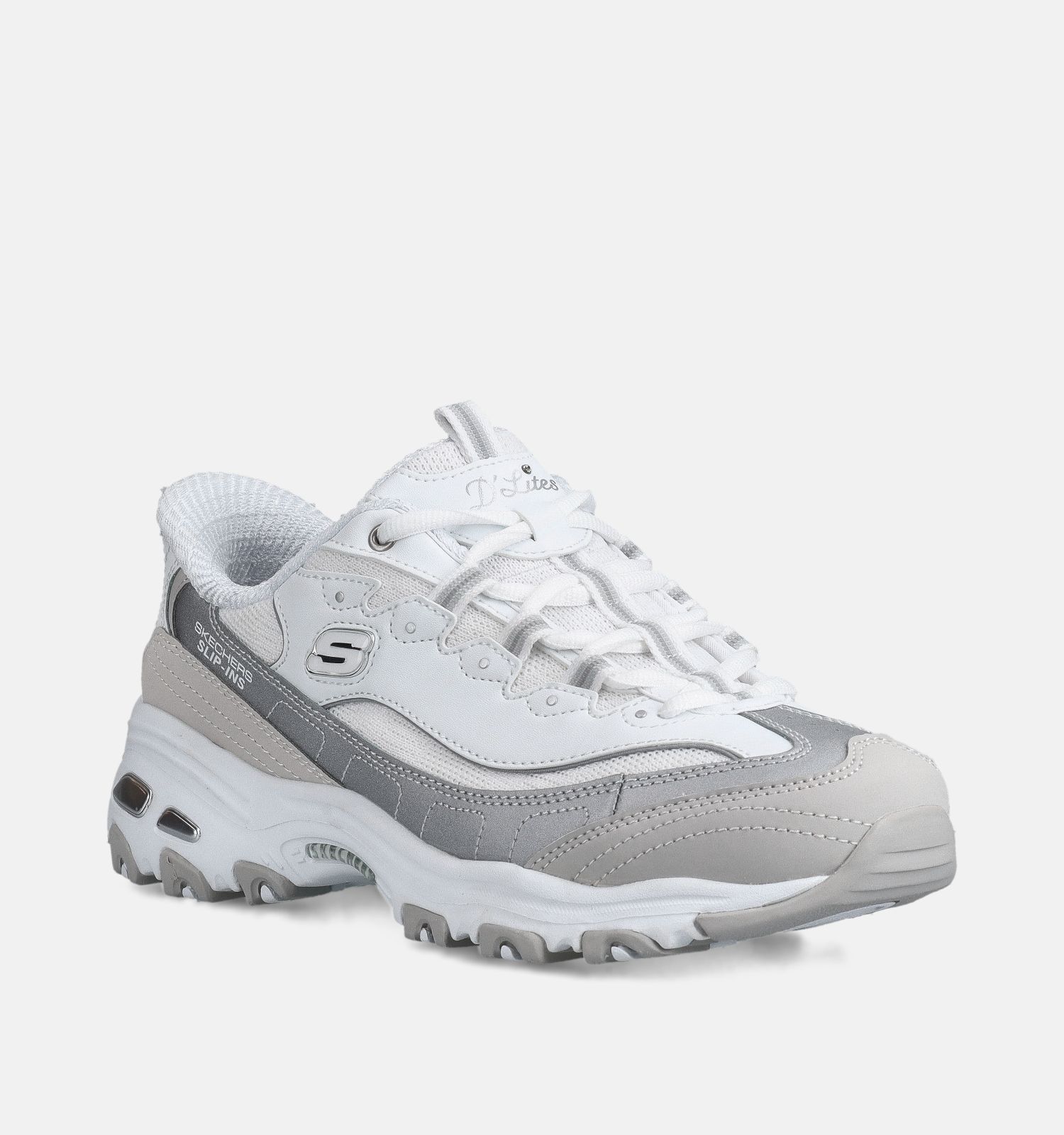 Belangrijk om te weten naar onderhoud toe: deze Skechers sneakers voor dames zijn vervaardigd uit stof binnenin, met versterkt kunstleer, leer, stof aan de buitenkant. Dit witte exemplaar heeft een vetersluiting.