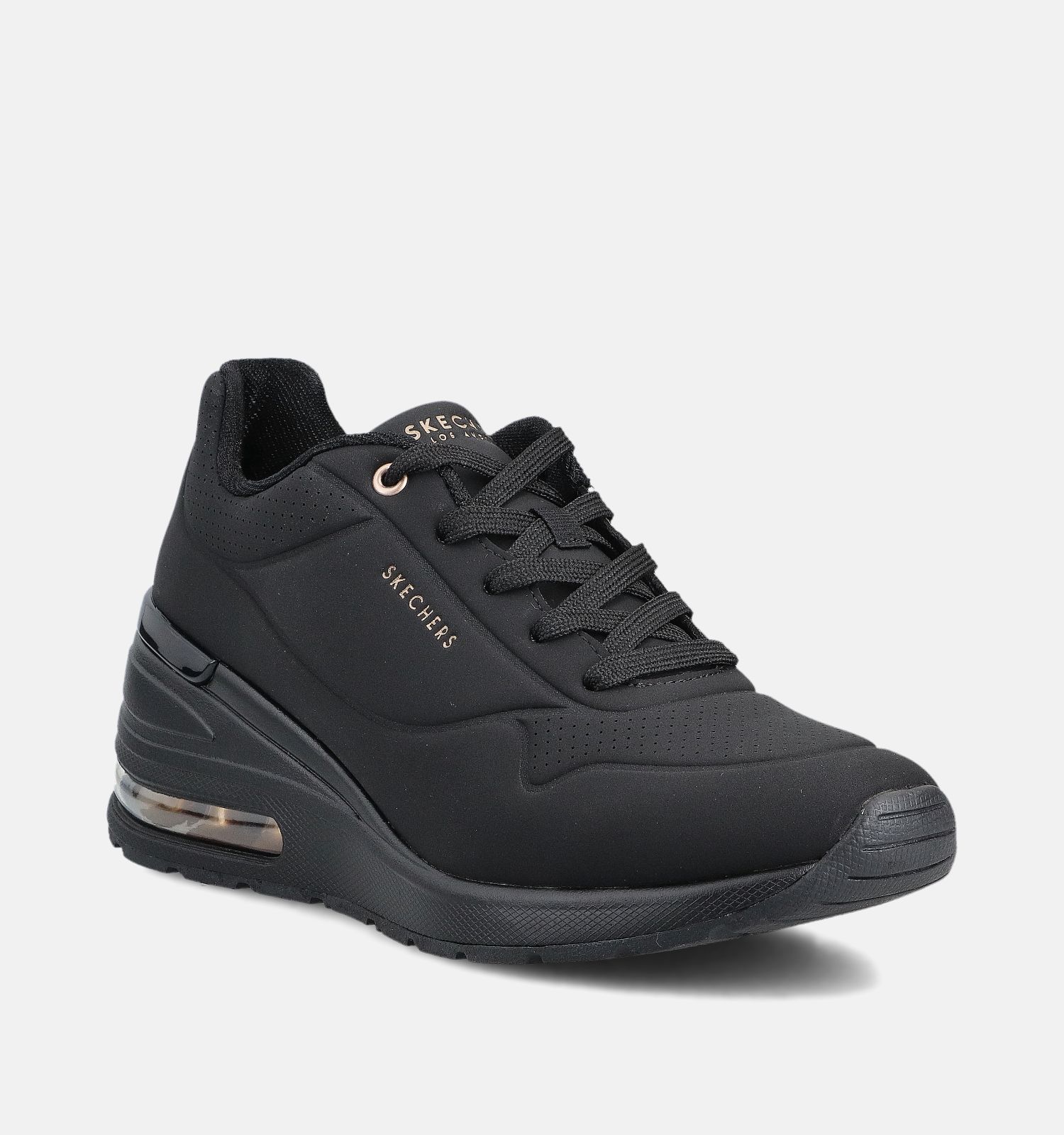 Dit Skechers exemplaar heeft een zachte binnenkant van stof. Het extra stevige buitenmateriaal is vervaardigd uit kunstleer. Onze belofte: je zal door deze Skechers Arch Fit damessneakers in de kleur zwart comfort ervaren zoals nooit tevoren. Probeer ze nu!
