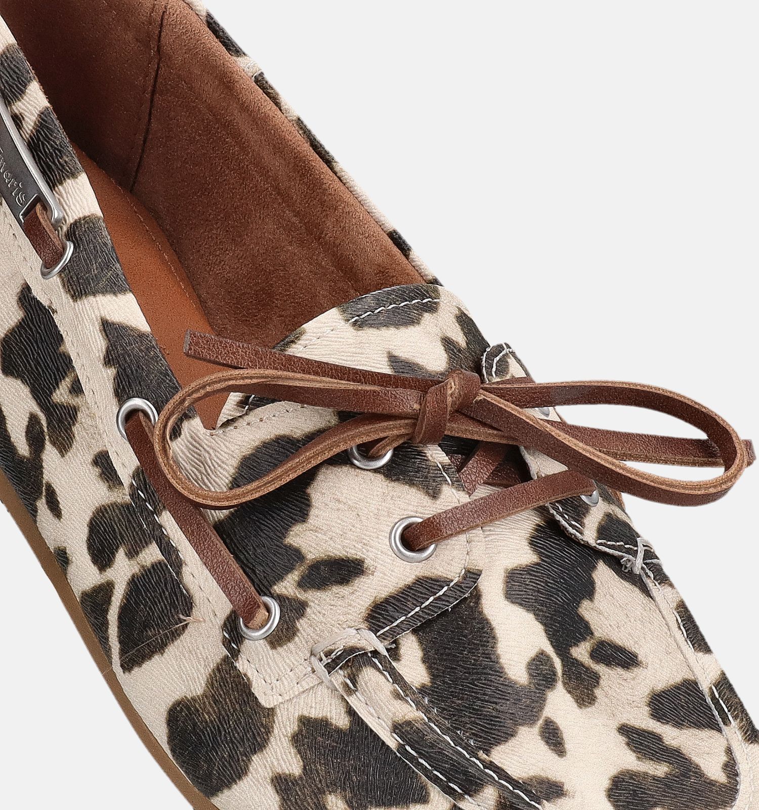 Deze bruine zomerschoenen uit kunstleer hebben een reliëfpatroon onderaan de rubberen zolen voor extra grip. Dit laag uitgesneden Tamaris model houdt de enkels fris – een welkom voordeel op warme dagen. De verstevigde stiknaden zijn opvallend maar esthetisch, en maken de bootschoenenlook helemaal af.