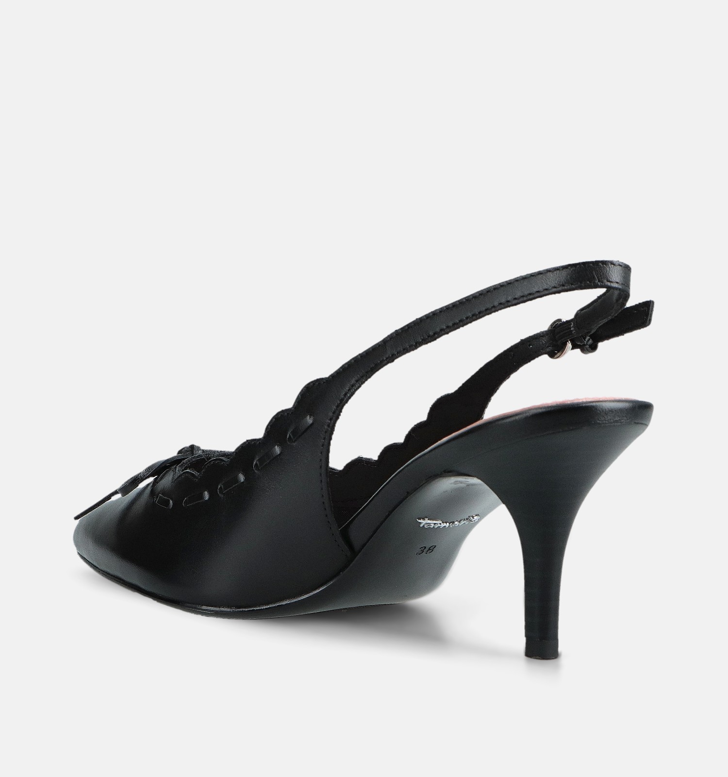 Omarm de chique stijl van de Parisiennes met deze zwarte slingback pumps van Tamaris! Slingback pumps zijn elegante hakken met een sierlijk enkelbandje en een open hiel — een combinatie die ze extra vrouwelijk en romantisch maakt. Daardoor zijn deze hakken van Tamaris een topkeuze voor elk seizoen. Op warme dagen zorgt de open hiel voor verademing en verfrissing, terwijl de gesloten neus je tenen beschermt tegen de kou tijdens koude herfst- of winterdagen.