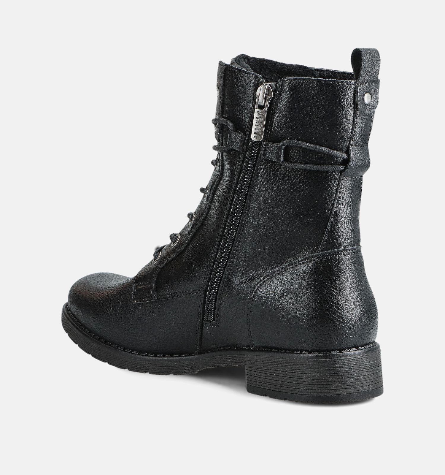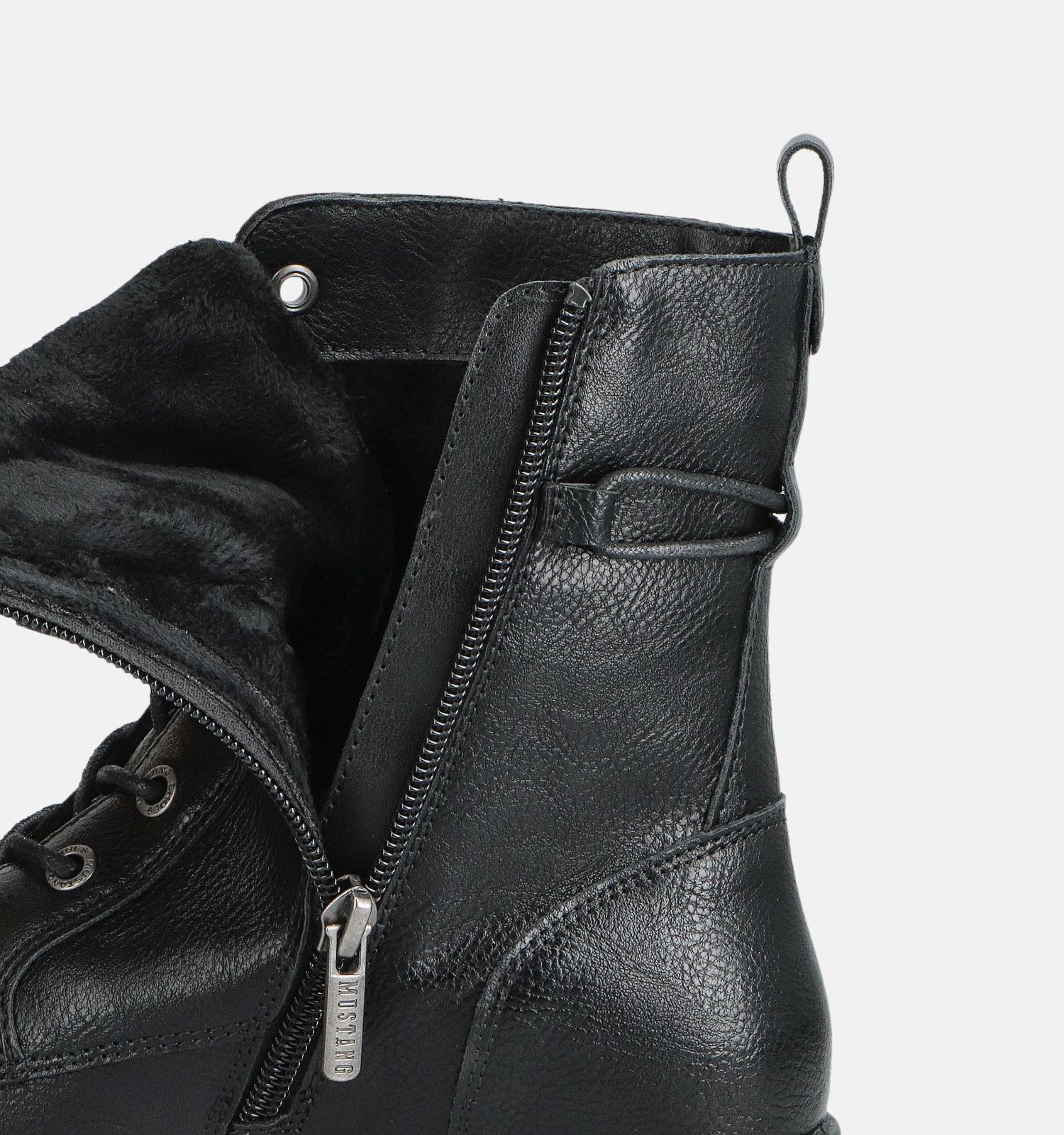 Comfortabele veterlaarzen zou iedereen in huis moeten hebben. Ze blijven een hot item en hun draagcomfort is subliem. Deze zwarte hoge schoenen van Mustang houden je vanaf nu gezelschap. Hun look is helemaal wat je zocht en je zal snel merken dat je ze onder veel outfits kan combineren.