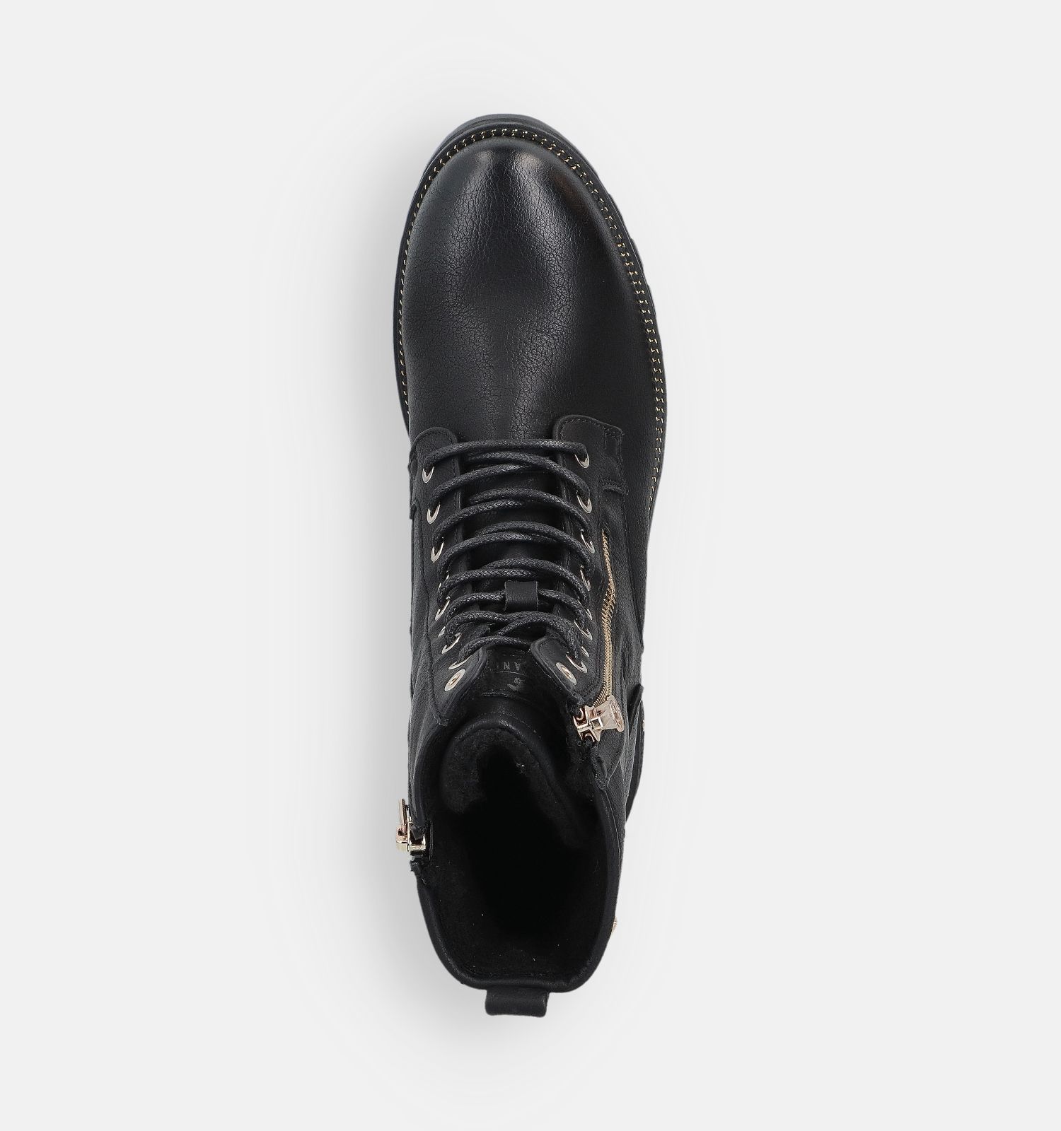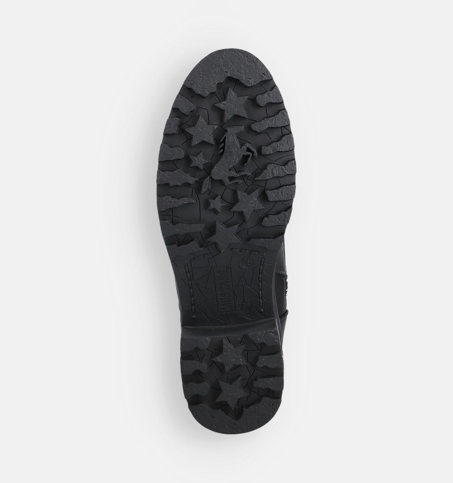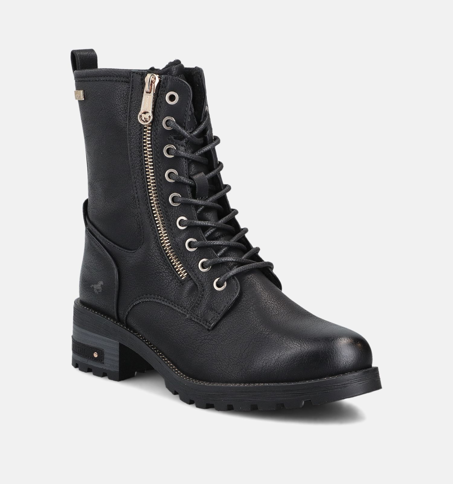 Comfortabele veterlaarzen zou iedereen in huis moeten hebben. Ze blijven een hot item en hun draagcomfort is subliem. Deze zwarte hoge schoenen van Mustang houden je vanaf nu gezelschap. Hun look is helemaal wat je zocht en je zal snel merken dat je ze onder veel outfits kan combineren.