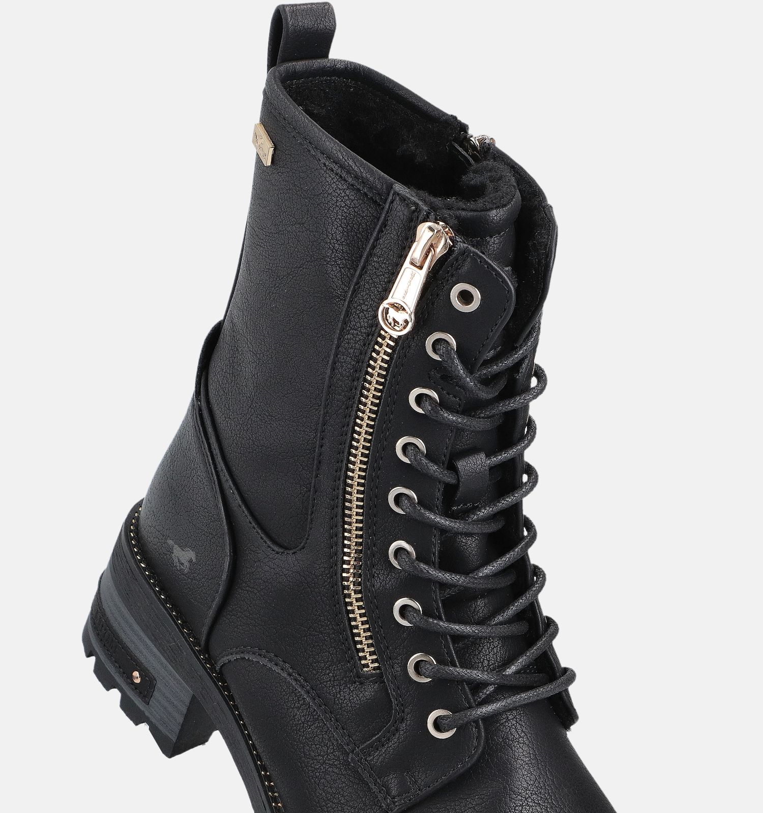 Deze veterlaars van Mustang is vervaardigd uit kunstleer en binnenin afgewerkt in stof.