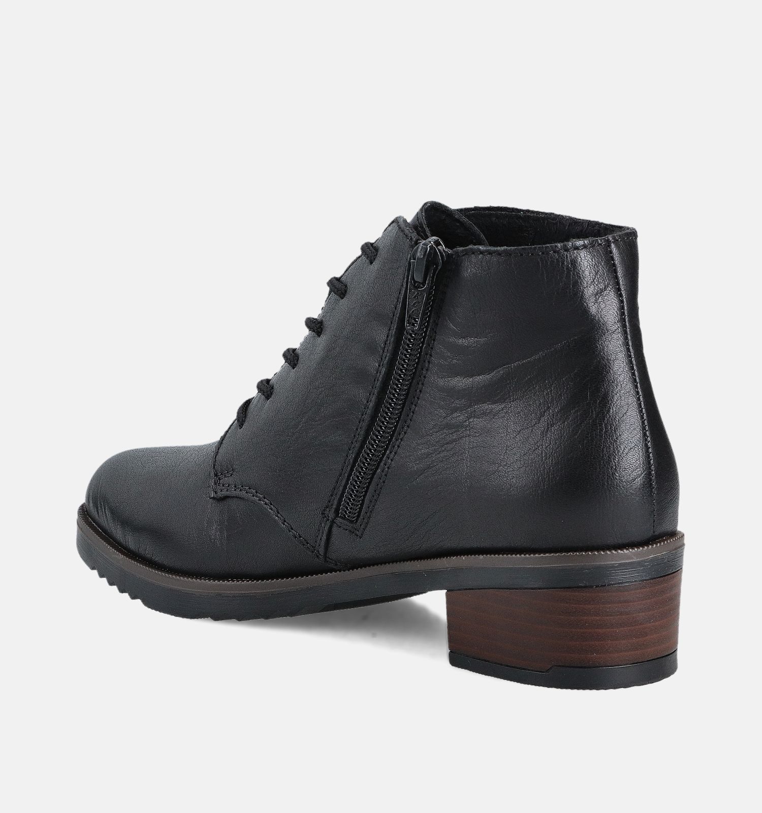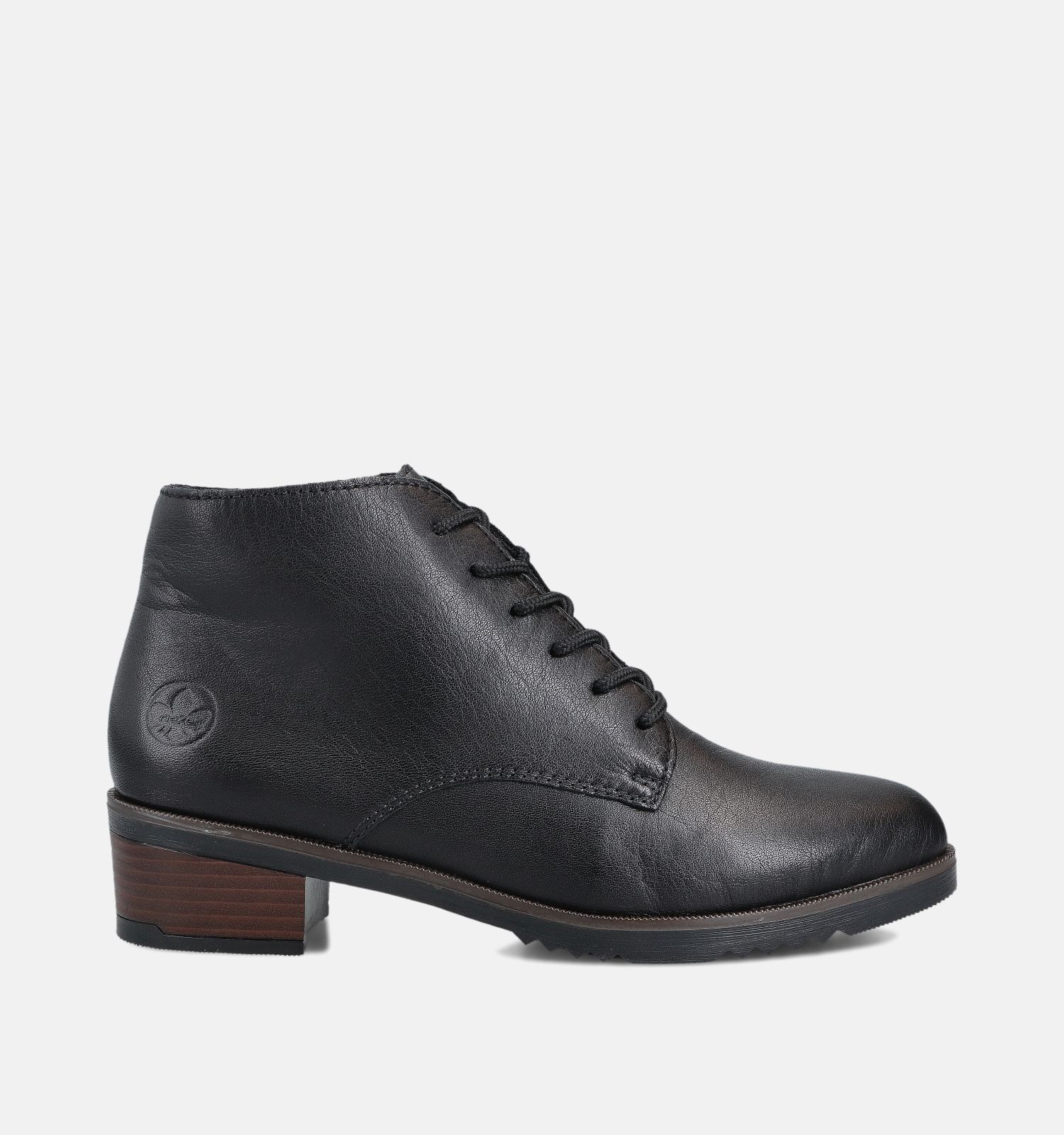 Deze boots in de kleur zwart zijn vervaardigd uit sterk leer, met zacht stof aan de binnenkant. Deze materialen hebben een extra licht gewicht, een antidotum tegen dat herkenbare gevoel dat jouw voeten na een tijd zwaar beginnen aan te voelen. De ergonomische pasvorm van deze Rieker damesboots houdt ook rekening met het feit dat alle voeten licht opzwellen tegen het einde van de dag. Zo ervaar je de hele dag door optimaal comfort! Deze Rieker boots voor dames hebben een rits & vetersluiting.