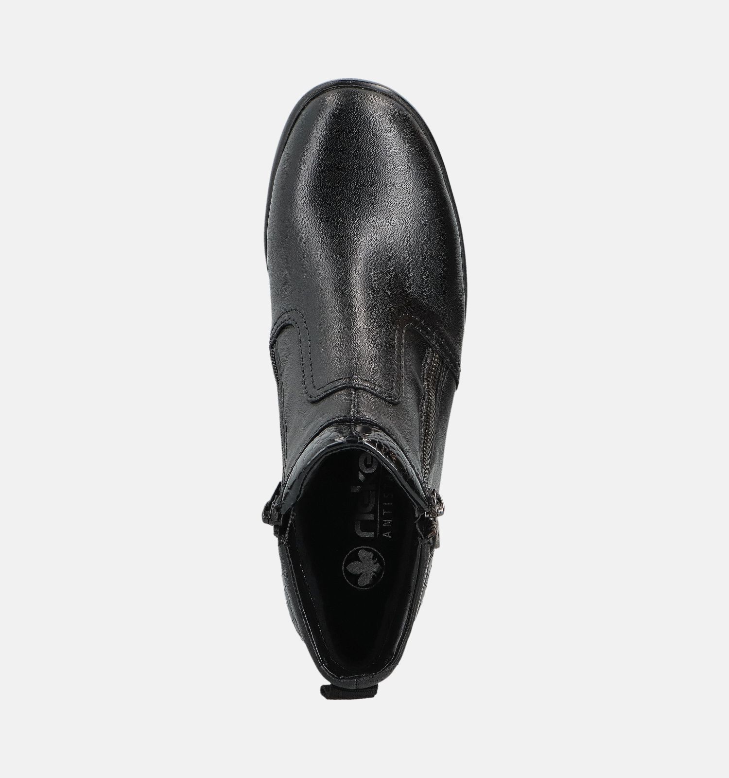 Deze Rieker enkellaarsjes voor dames zijn anti-stress schoenen. Dit betekent dat deze zwarte enkellaarsjes optimaal comfort bieden, de hele dag door. De schokdempende schoenzolen verkleinen de wandelimpact en verspreiden de druk over de hele zool heen.