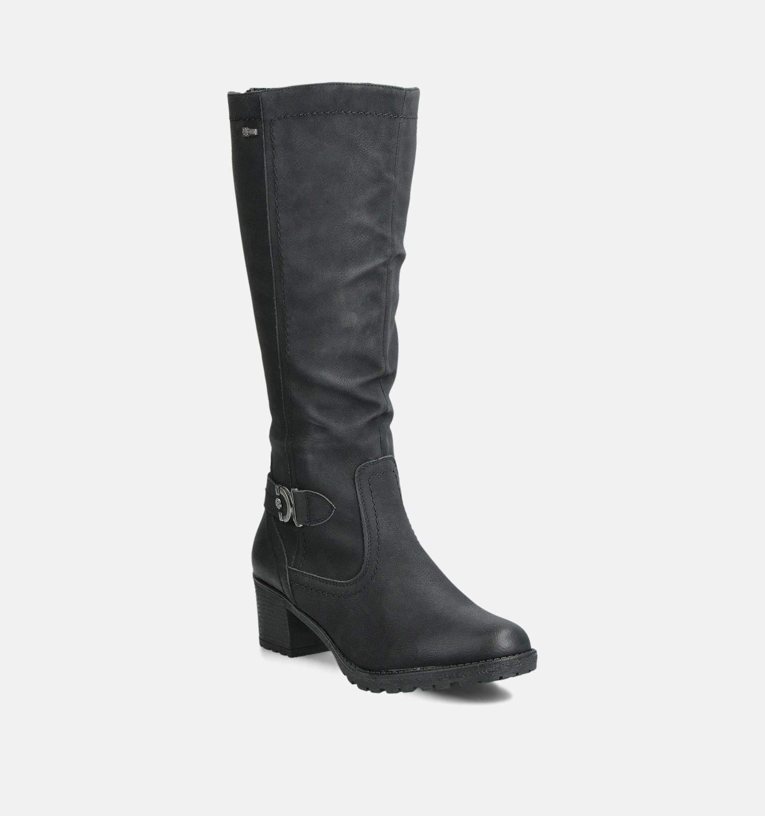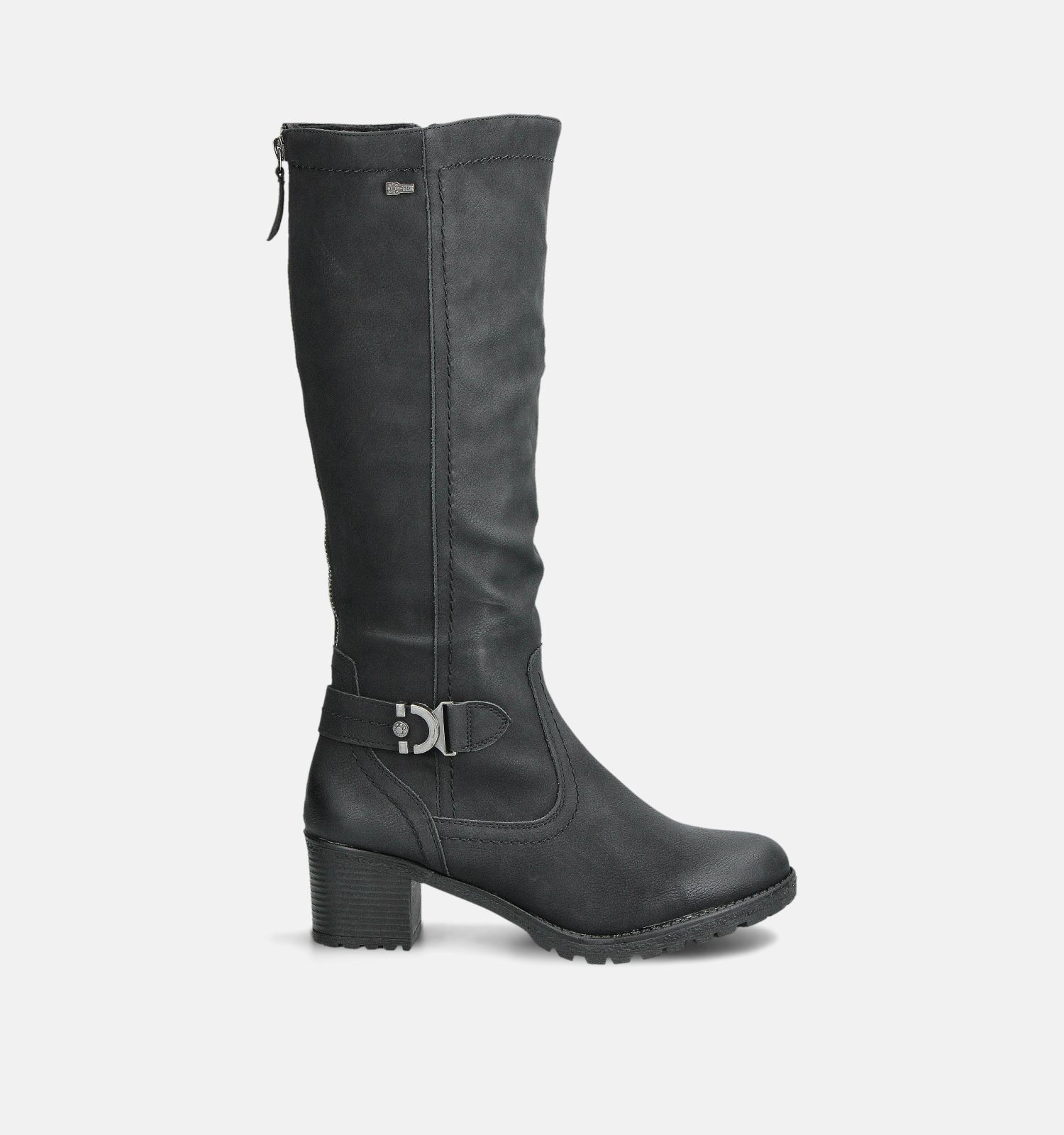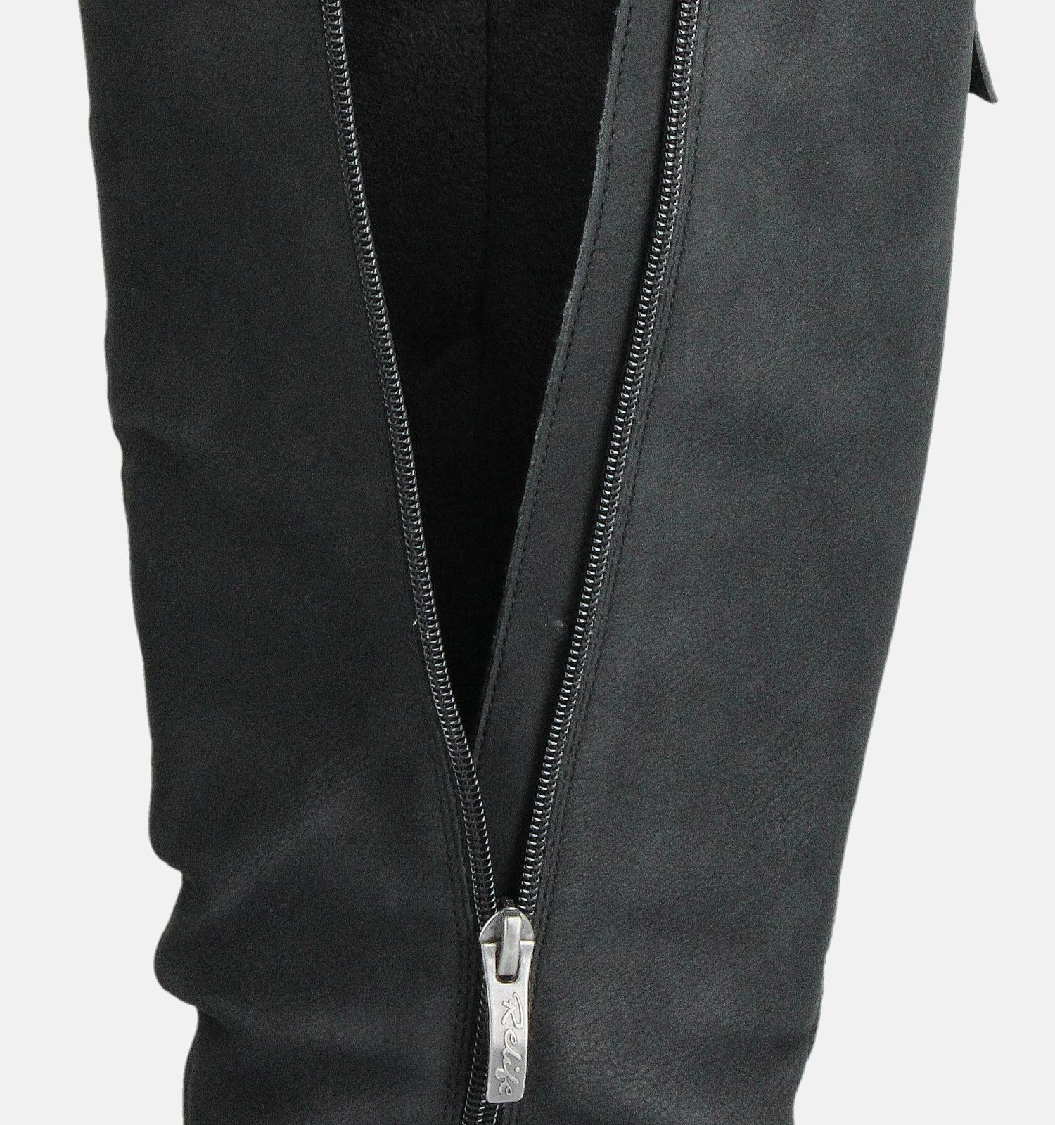 Deze laarzen met lage hakken van Relife reiken met een schachthoogte van 38 cm tot net onder de knieën. Dankzij die lengte bieden deze knielaarzen meer steun en stabiliteit dan lagere laarsjes. De kuitbreedte van deze Relife laarzen in zwarte kunstleer is Normaal (35 - 39 cm).