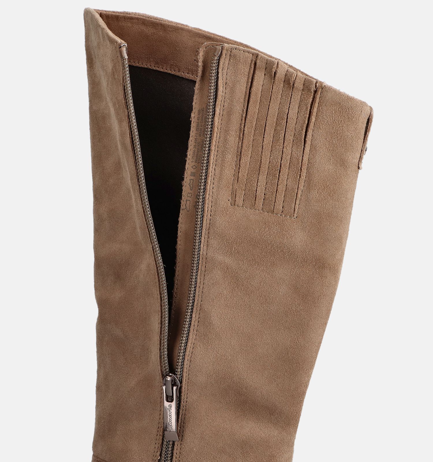 Niets is vrouwelijker dan lange laarzen met een hoge hak! Deze bruine laarzen van het merk Tamaris zullen ongetwijfeld een permanente plaats in je hart én je schoenenkast veroveren. Daar zijn we zeker van! Dit Tamaris model uit bruine suède verlengt jouw benen, letterlijk en figuurlijk, wat zeer chic, elegant en vrouwelijk oogt. Je outfit ziet er meteen luxueus uit, en jij extra zelfverzekerd. Door deze Tamaris ritslaarzen met hoge hakken blijven de complimenten maar komen.