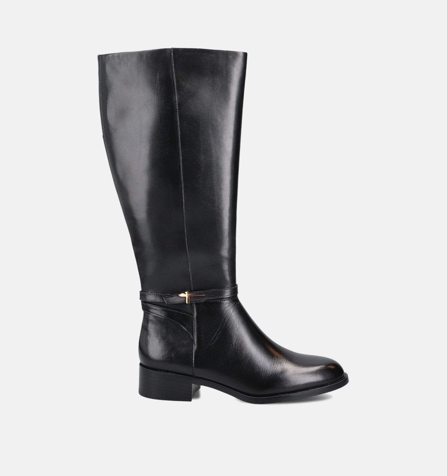 Deze laarzen met lage hakken van Tamaris reiken met een schachthoogte van 40 cm tot net onder de knieën. Dankzij die lengte bieden deze knielaarzen meer steun en stabiliteit dan lagere laarsjes. De kuitbreedte van deze Tamaris laarzen in zwarte leer is .