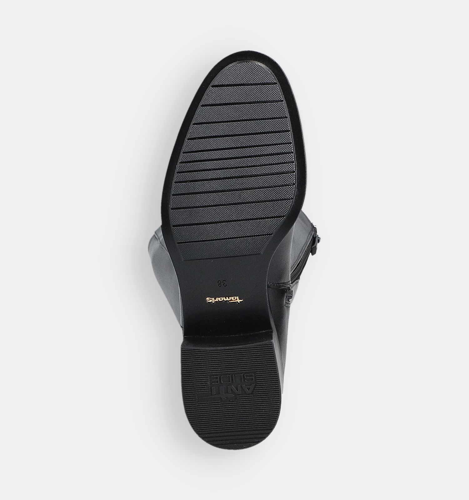 Je gaat stralen met deze zwarte lange laarzen uit de schoenencollectie van Tamaris! Deze trendy laarzen zijn modern, elegant én comfortabel. Een match made in heaven. Dit paar heeft een subtiele hak van enkele centimeters hoog, die de Tamaris schoenen een vrouwelijke uitstraling geeft zonder in te boeten op stapcomfort. Dat maakt deze zwarte laarzen ideaal voor elke gelegenheid – van de kantoorvloer tot je volgende familiefeest. Jij ervaart namelijk ultiem comfort, de hele dag door, en dat zie je aan elke zelfzekere stap die je zet.