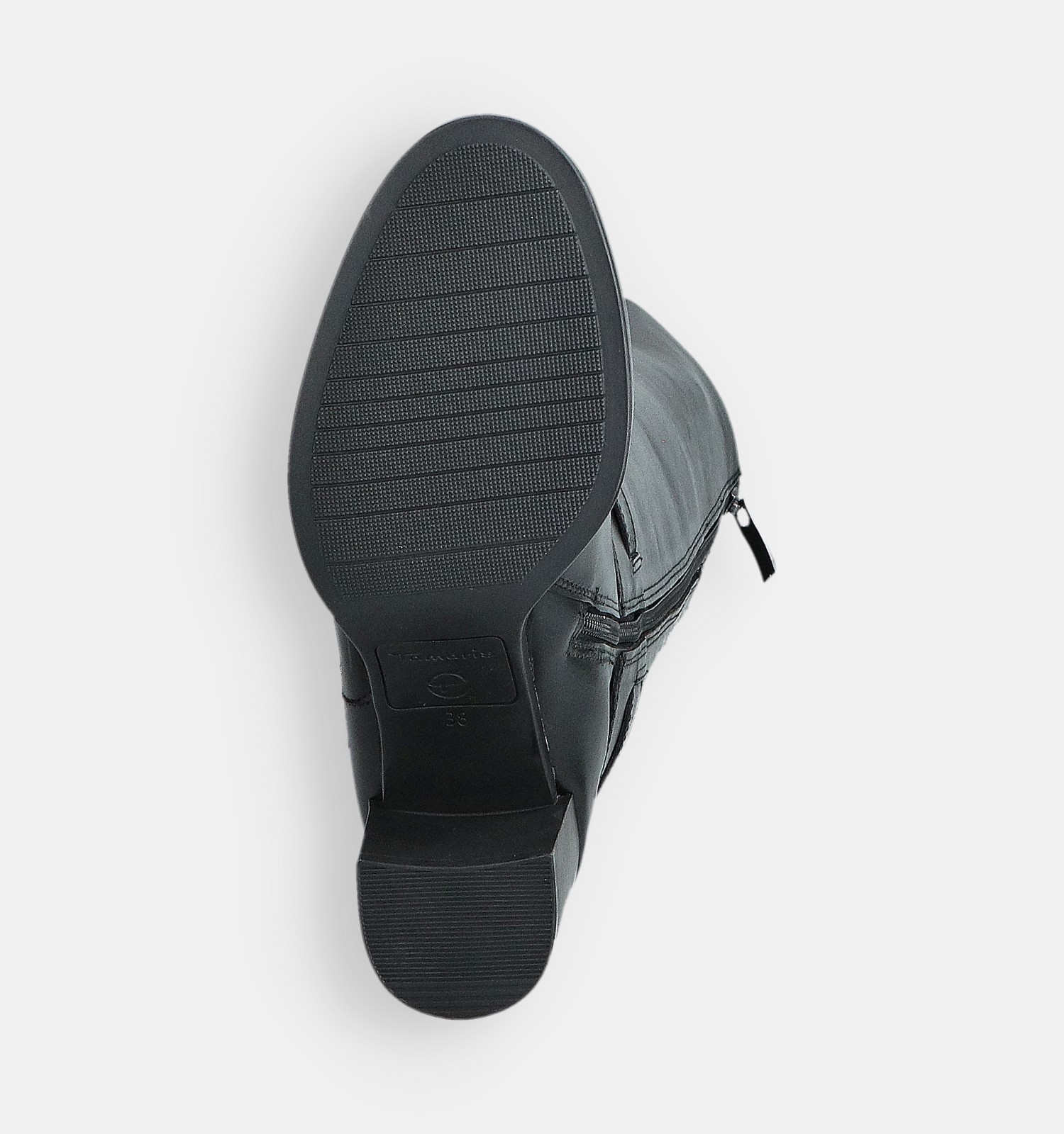 Goed om te weten: deze zwarte blokhaklaarzen van Tamaris hebben een schachthoogte van ongeveer 39 cm. De kuitbreedte van dit hoge model is .