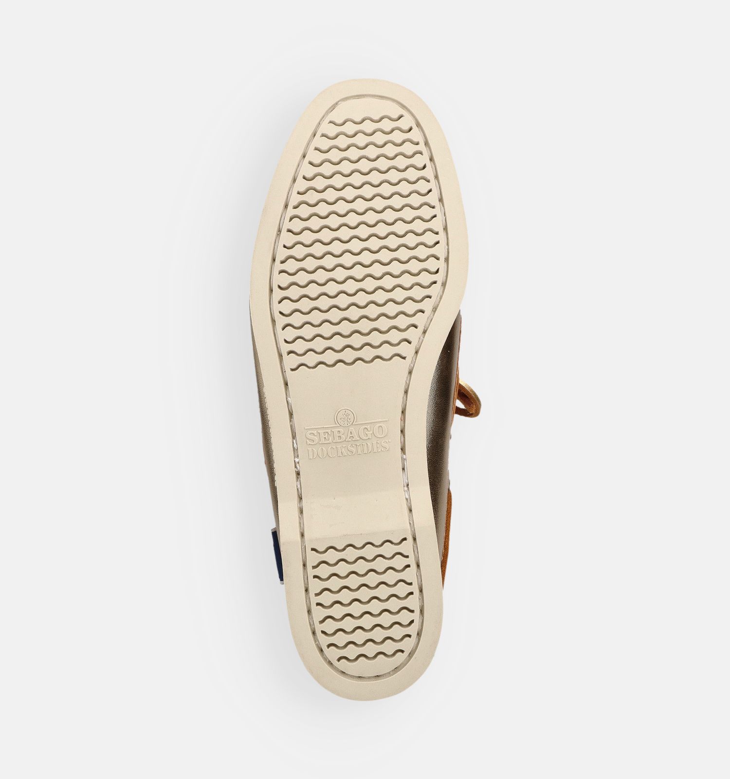 Bootschoenen, ook wel bekend onder de Engelse term boat shoes, zijn al decennialang een favoriet van dames die houden van zeilen of gewoonweg veel waarde hechten aan klasse, functionaliteit en comfort. Maar laat je niet misleiden door de nautische oorsprong van deze Sebago damesschoenen: bootschoenen zijn allang niet meer enkel voor op het dek! Dit gouden model uit leer bewijst dat maar al te goed. Je hebt geen boot nodig om te genieten van deze Sebago Docksides schoenen – enkel goed weer! Ze staan perfect onder casual-chic outfits, zoals damesshorts, chino’s of linnen broeken.