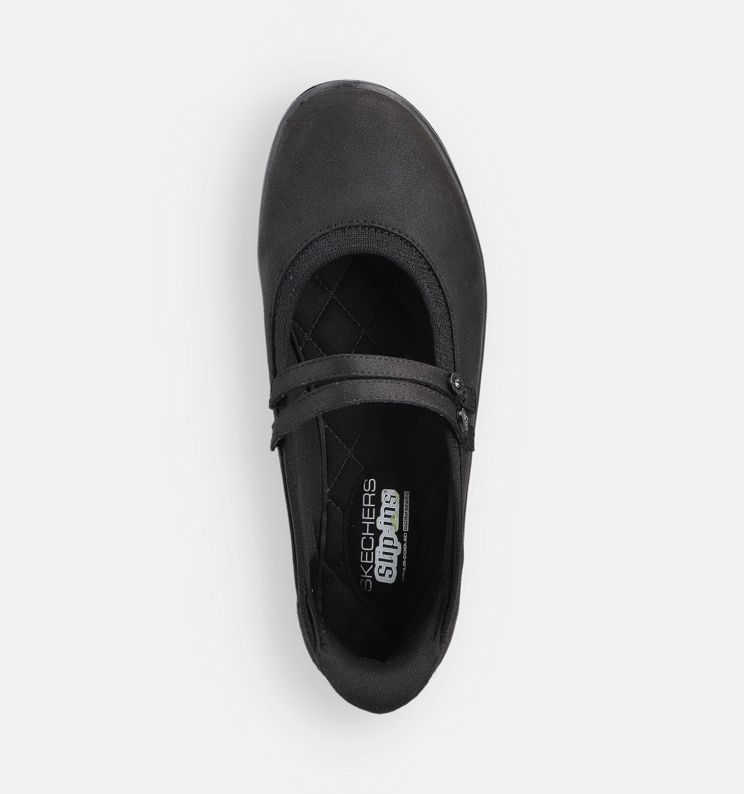Belangrijk om te weten naar onderhoud toe: deze Skechers lage schoenen voor dames zijn vervaardigd uit stof binnenin, met versterkt stof aan de buitenkant. Dit zwarte exemplaar heeft een instapsluiting.