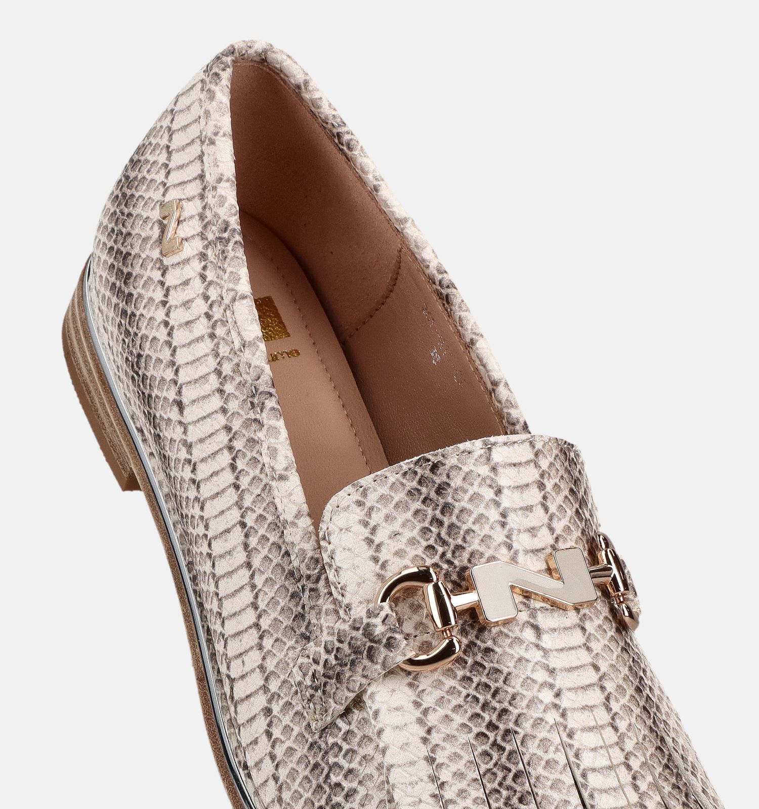 Deze loafer voor dames (in de kleur beige) heeft een zachte binnenvoering uit kunstleer, leer, wat het stapcomfort verhoogt. Dit Nathan-Baume model heeft als voetbreedte F - Normale voet. Deze loafers zijn een echte aanwinst voor jouw schoenencollectie. Je raadt het misschien al, maar wij zijn grote fan van deze beige Nathan-Baume instappers: we love loafers!