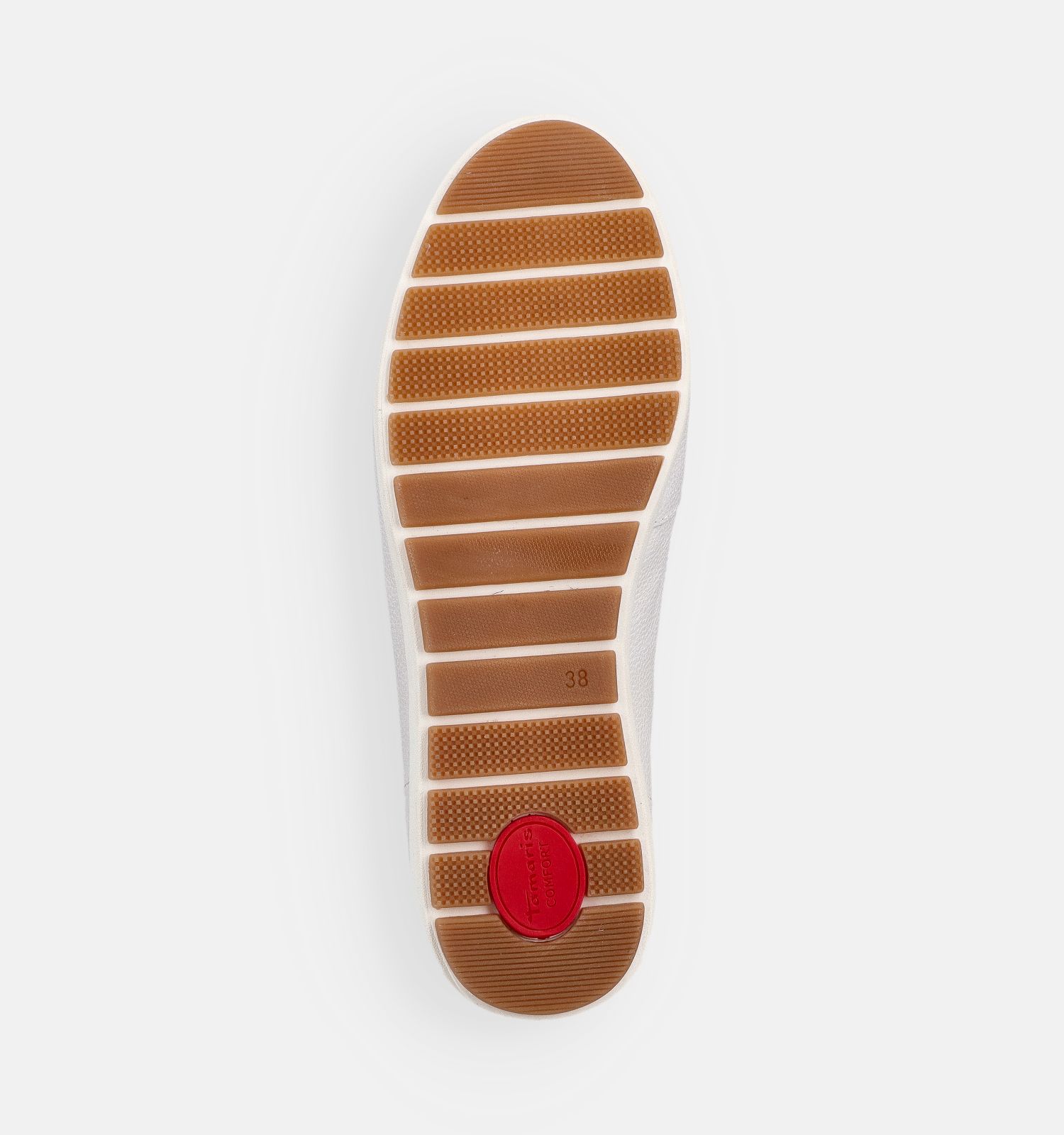 Tamaris Comfort is de nieuwste schoenencollectie van Tamaris! Deze witte lage schoenen maken deel uit van die nieuwe collectie. Het uitneembare voetbed is ergonomisch en verlicht de druk op de hielen en op de bal van de voet. Dit zorgt voor hemels stapcomfort. Uniek aan de Tamaris Comfort collectie is de pasvorm. Deze lage schoenen vallen namelijk net iets breder qua leest, wat de voeten meer ademruimte geeft en net voldoende is om die licht opgezwollen voeten op het einde van de dag verlichting te bieden. Deze witte lage schoenen zijn vervaardigd uit leer, met aan de binnenkant een afwerking van kunstleer, stof.
