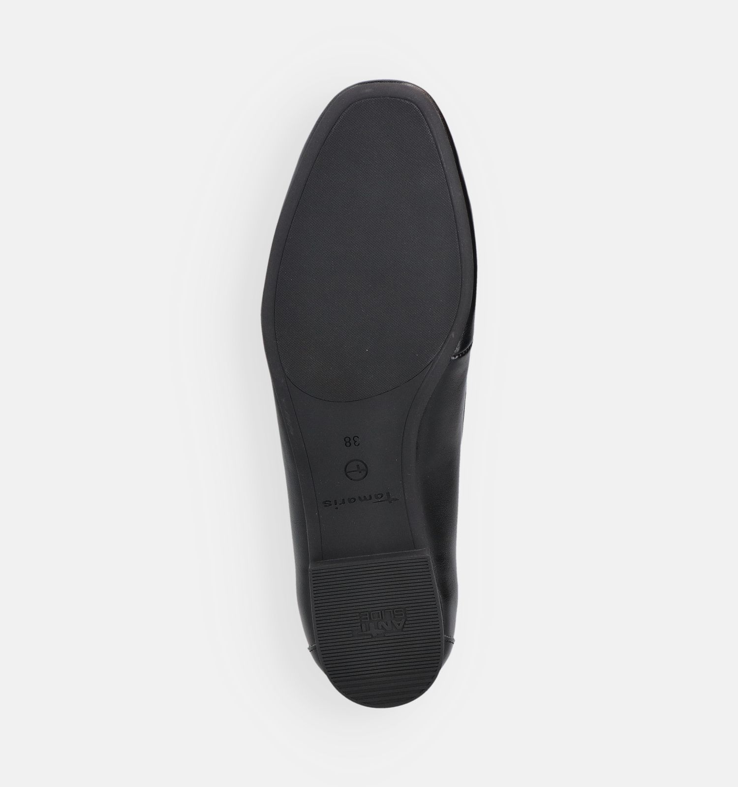 Deze Tamaris loafers uit zwarte kunstleer hebben een elegant silhouet met op de wreef die twee kenmerkende inkepingen. Wist je dat dit een versmallend effect op de voetbreedte creëert? Het is een detail dat de loafer ook visueel lichter en moderner maakt, waardoor deze Tamaris instapper makkelijker te combineren valt met zowel jeans als gekledere stukken. Deze zwarte damesloafers van het merk Tamaris hebben ook een subtiele blokhak die je op een elegante manier wat extra hoogte geeft. Dit tilt de hiel licht op, wat je lichaam subtiel naar voren kantelt – resulterend in een rechtere rug en betere houding!