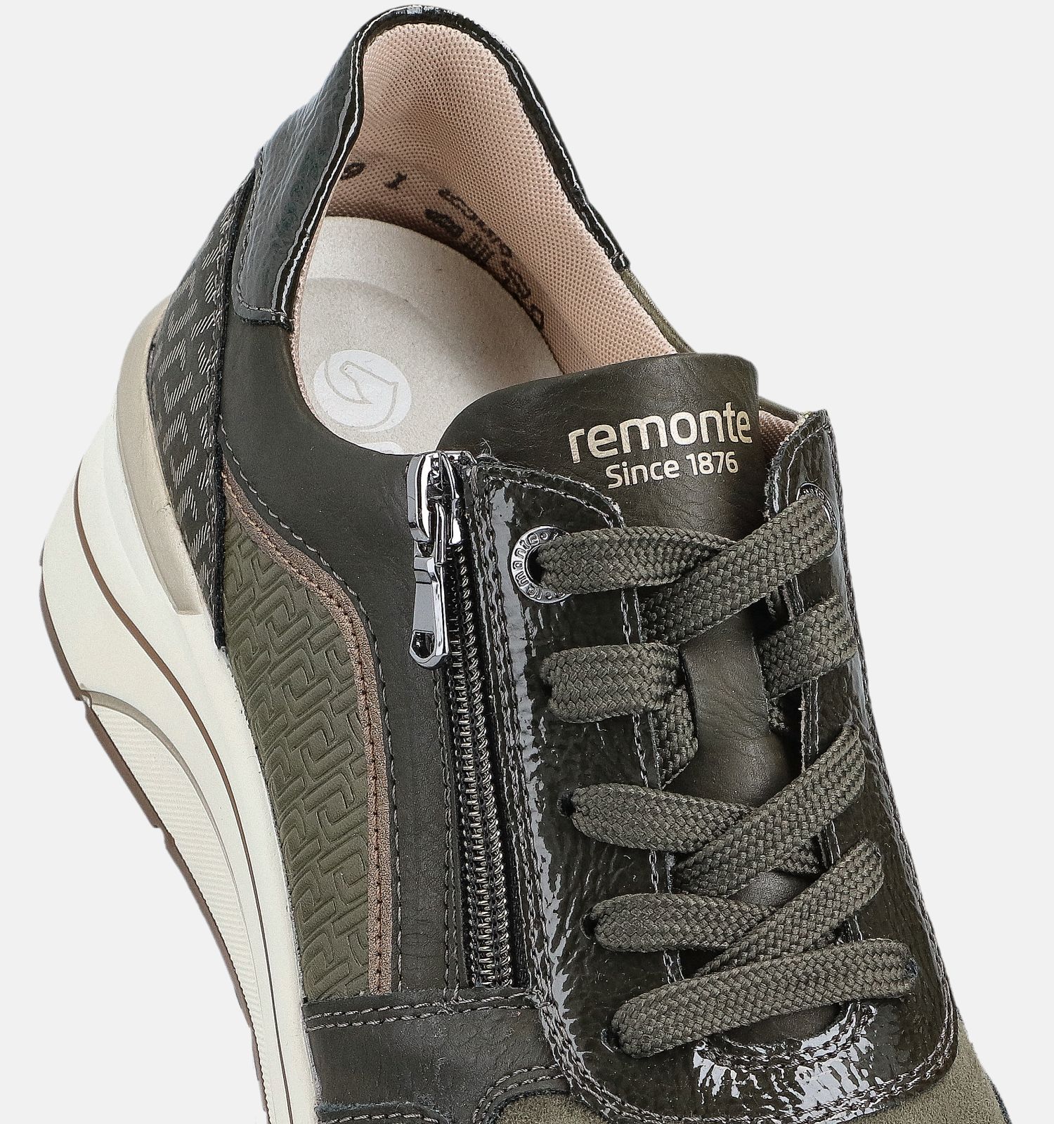 Deze rits-veterschoenen van het merk Remonte zijn niet alleen een goede oplossing voor dames met rugklachten of mobiliteitsproblemen, maar ook een ideale keuze voor iedereen die gewoonweg snel de deur uit wil. De rits-vetercombinatie van deze groene Remonte damesschoenen stel je op twee momenten op maat af – daarna hoef je ze in principe niet meer opnieuw te strikken.