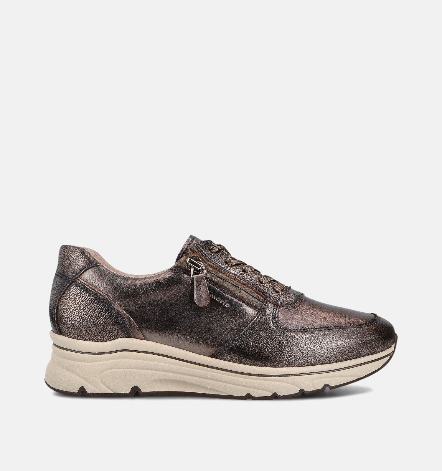 Deze rits-veterschoenen van het merk Tamaris zijn niet alleen een goede oplossing voor dames met rugklachten of mobiliteitsproblemen, maar ook een ideale keuze voor iedereen die gewoonweg snel de deur uit wil. De rits-vetercombinatie van deze bruine Tamaris damesschoenen stel je op twee momenten op maat af – daarna hoef je ze in principe niet meer opnieuw te strikken.