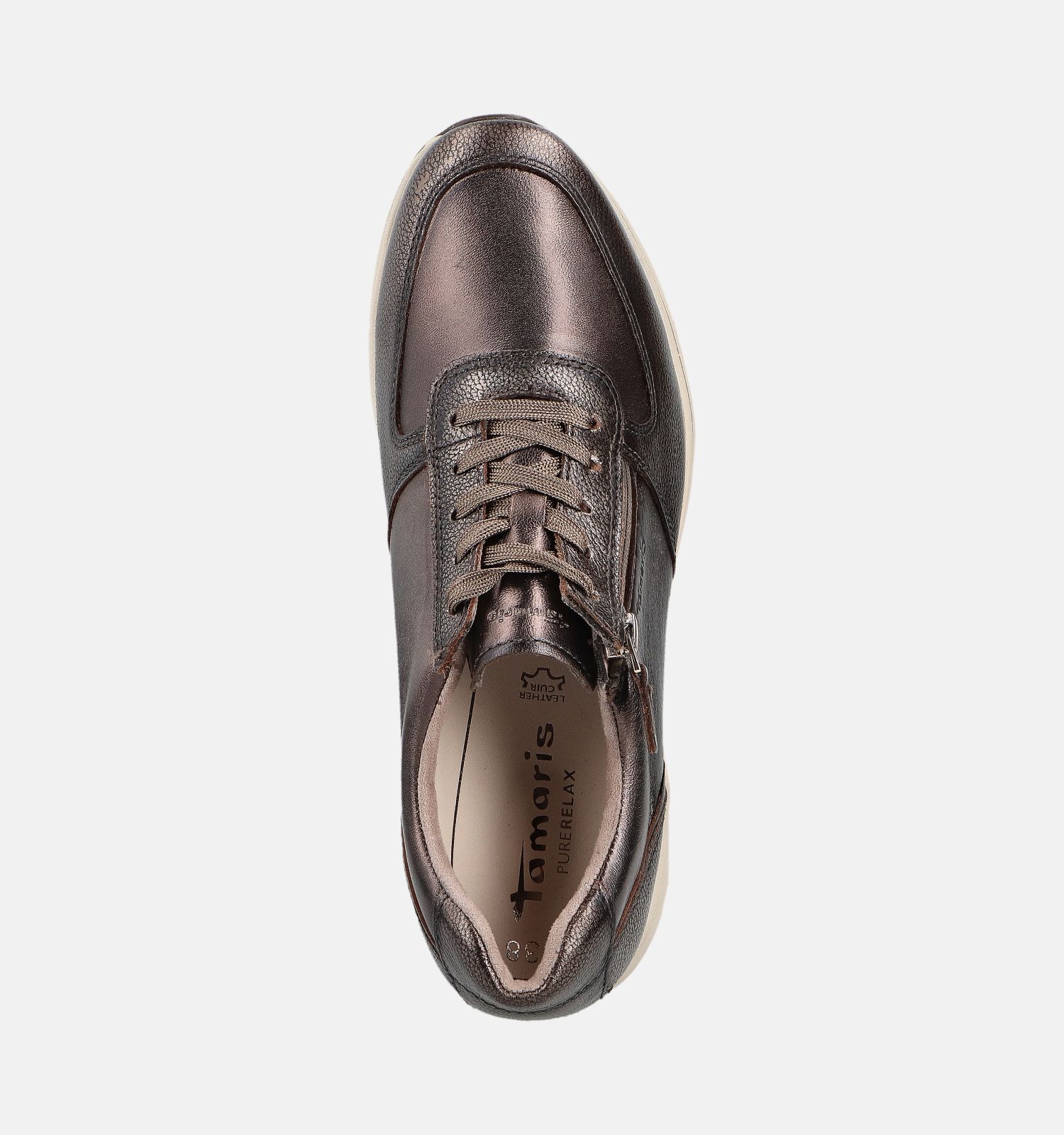 Deze moderne damesschoenen van het merk Tamaris zijn geschikt voor voetbreedte F - Normale voet. De Tamaris schoenen in bruine leer zijn een droom voor dames die op een slimme manier tijd willen besparen, zonder in te boeten op présence en comfort.