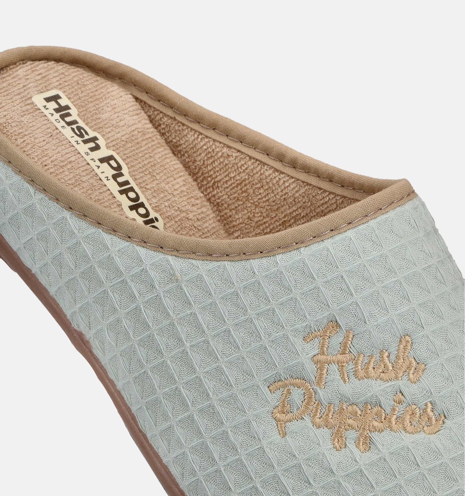Deze open pantoffels zijn vervaardigd uit kwalitatief stof, met binnen stof. Dit groene exemplaar heeft geen sluiting, waardoor ze makkelijk en snel aan- en uit te trekken zijn. Het design van deze open damespantoffels is mooi meegenomen! Groen blijft gewoon tijdloos. Stap uit jouw schoenen en schuif ultiem comfort aan je voeten, met deze zachte pantoffels van Hush Puppies.