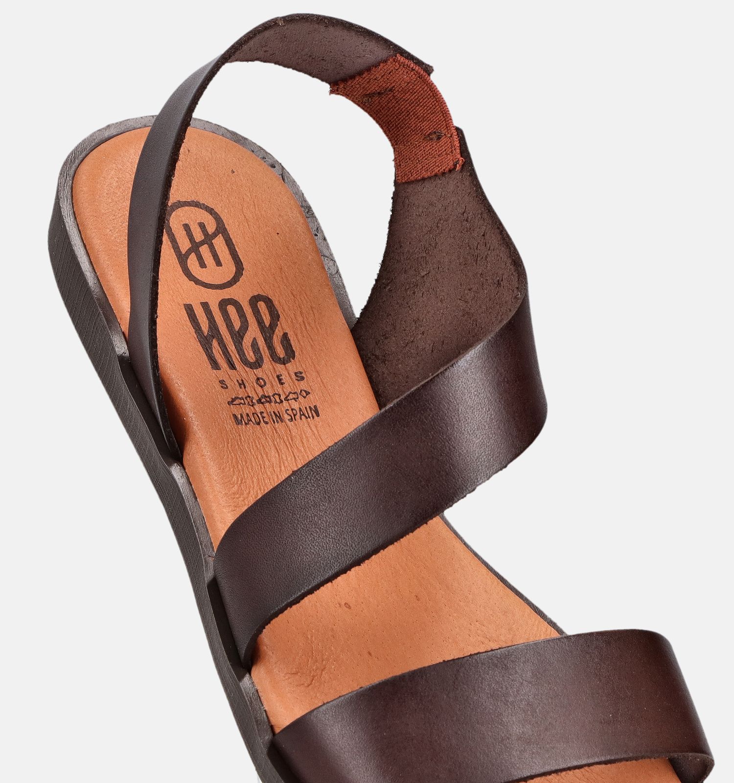 Het grootste voordeel van deze platte sandalen van Hee is echter het comfort. De platte zolen zijn net dik genoeg om een licht schokabsorberend effect te bieden. Dat zorgt voor extra wandelcomfort, zeker op ongelijke en/of harde ondergronden. Dat verschil merk je! Dit Hee -model in de kleur bruin is bovendien vervaardigd uit kwalitatieve maar lichte materialen zoals leer. Deze lichtgewicht sandalen helpen actief om vermoeide voeten te voorkomen.